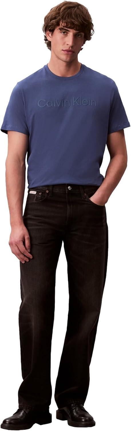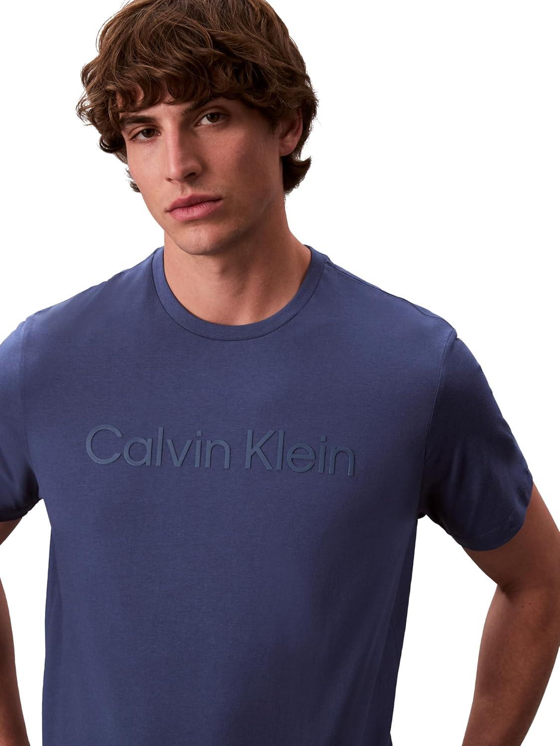 Calvin Klein Men’s Relaxed Fit CK Logo Crewneck T-Shirt(Ensign Blue)