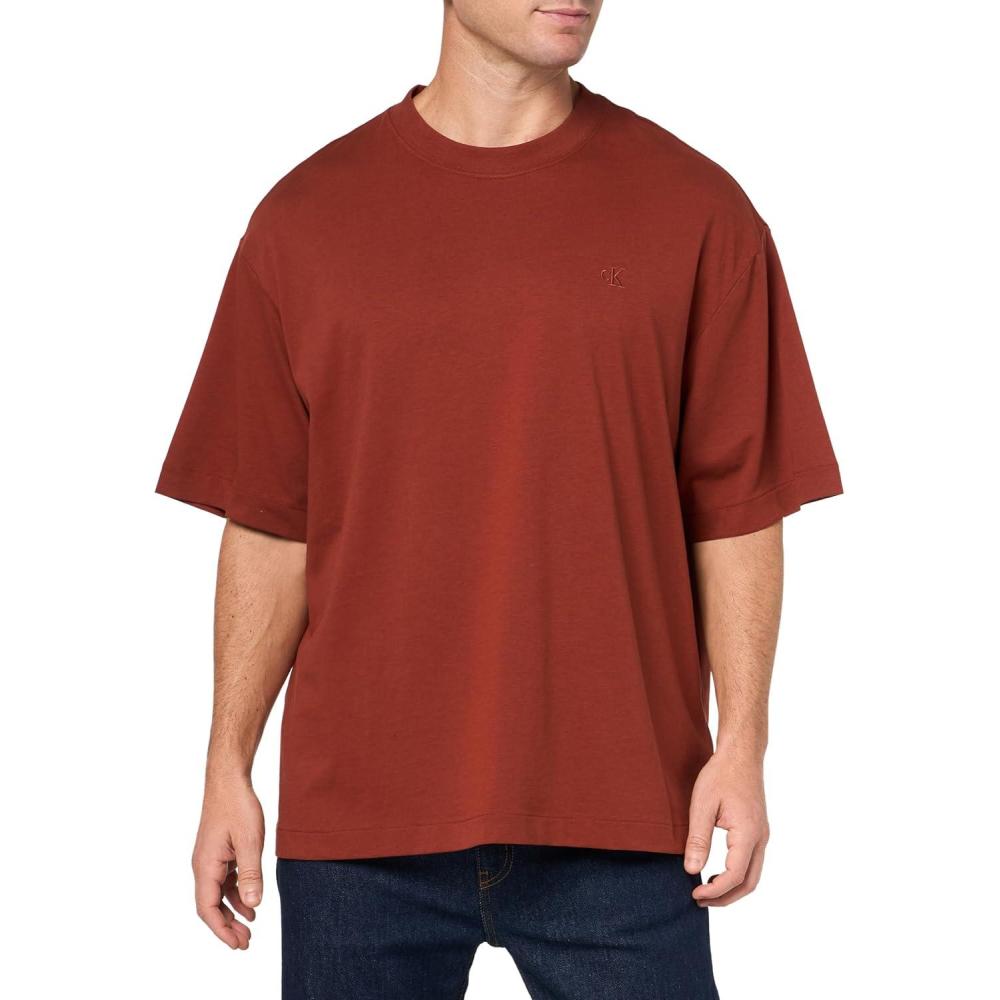 Calvin Klein Men’s Relaxed Fit Monogram Logo Crewneck T-Shirt(Roasted Russet)