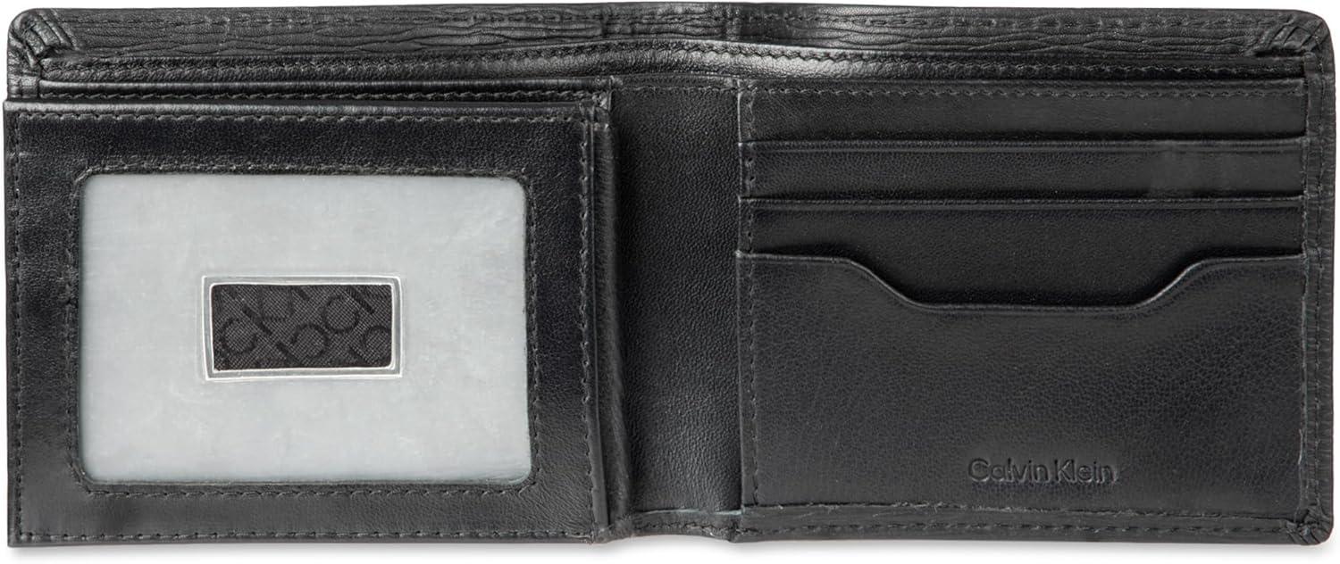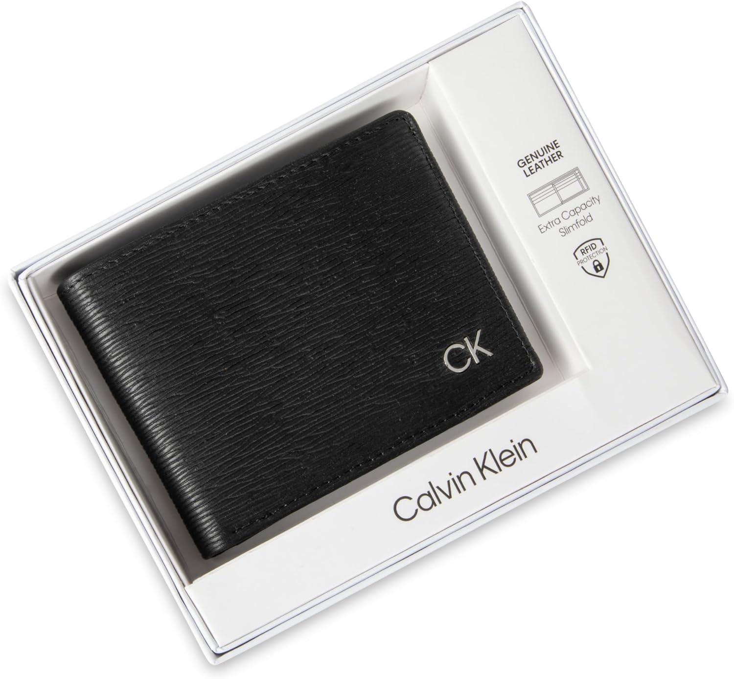 Calvin Klein Men’s RFID Leather Minimalist Bifold Wallet(Black Textured)