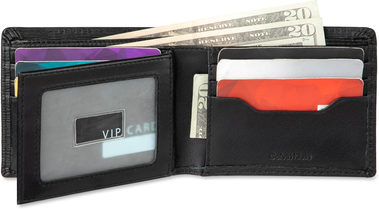 Calvin Klein Men’s RFID Leather Minimalist Bifold Wallet(Black Passcase)
