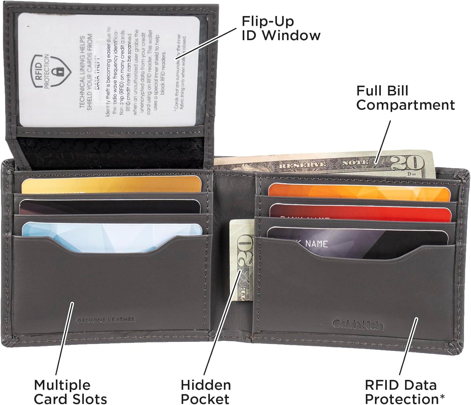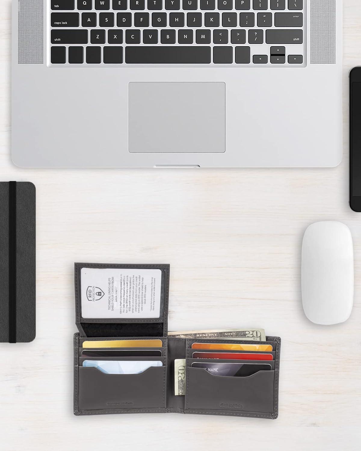 Calvin Klein Men’s RFID Leather Minimalist Bifold Wallet(Grey Passcase)