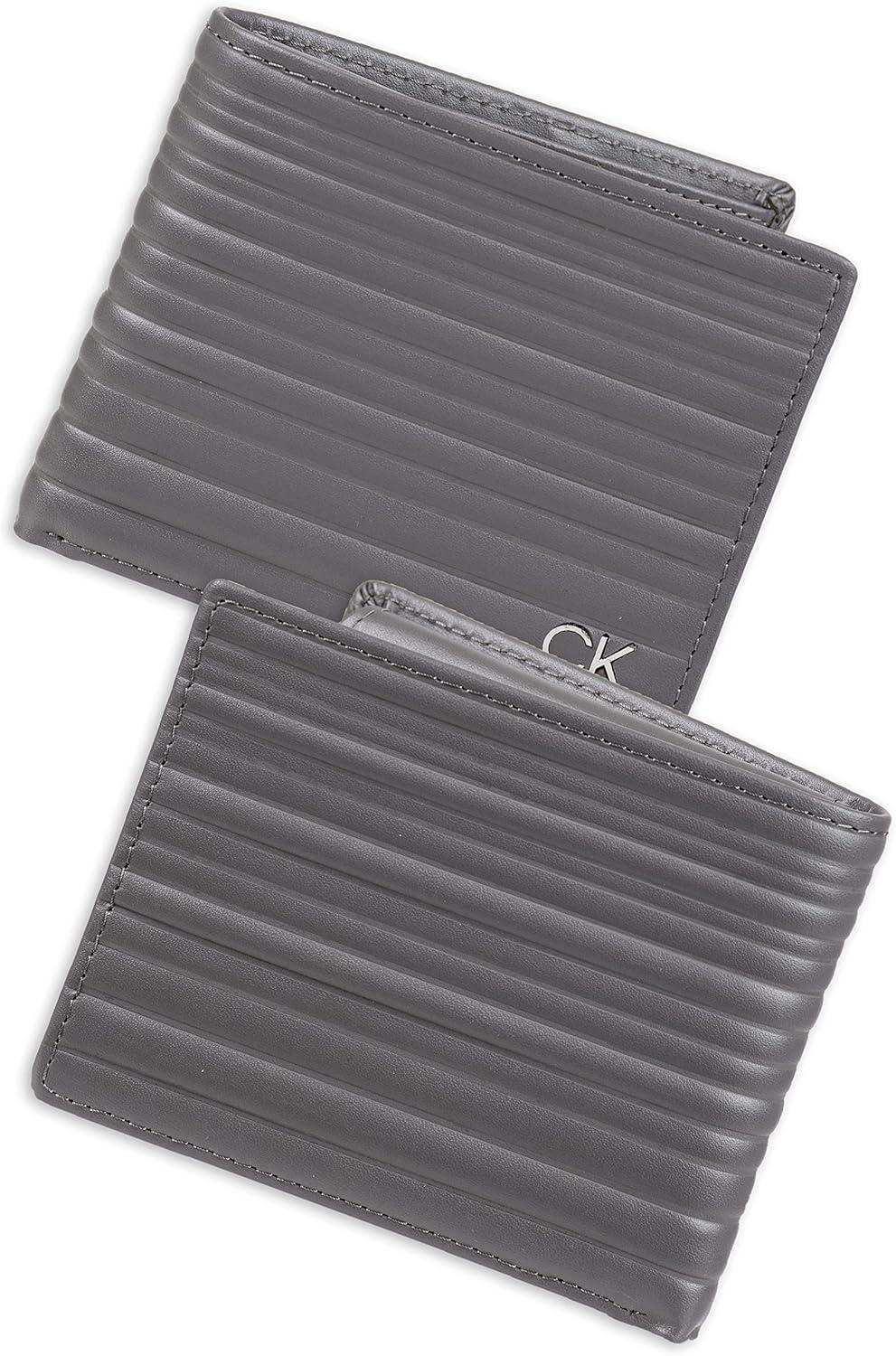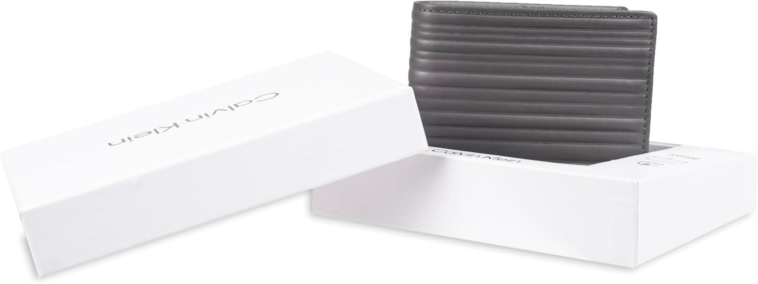 Calvin Klein Men's RFID Leather Minimalist Bifold Wallet(Grey Passcase)