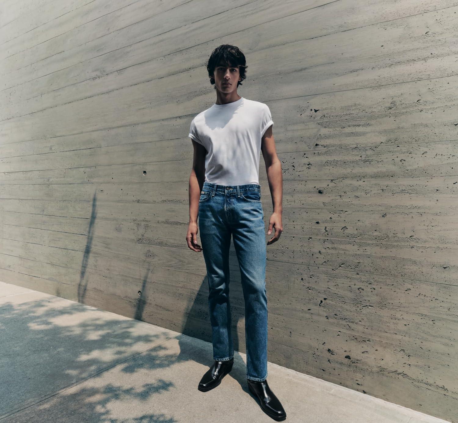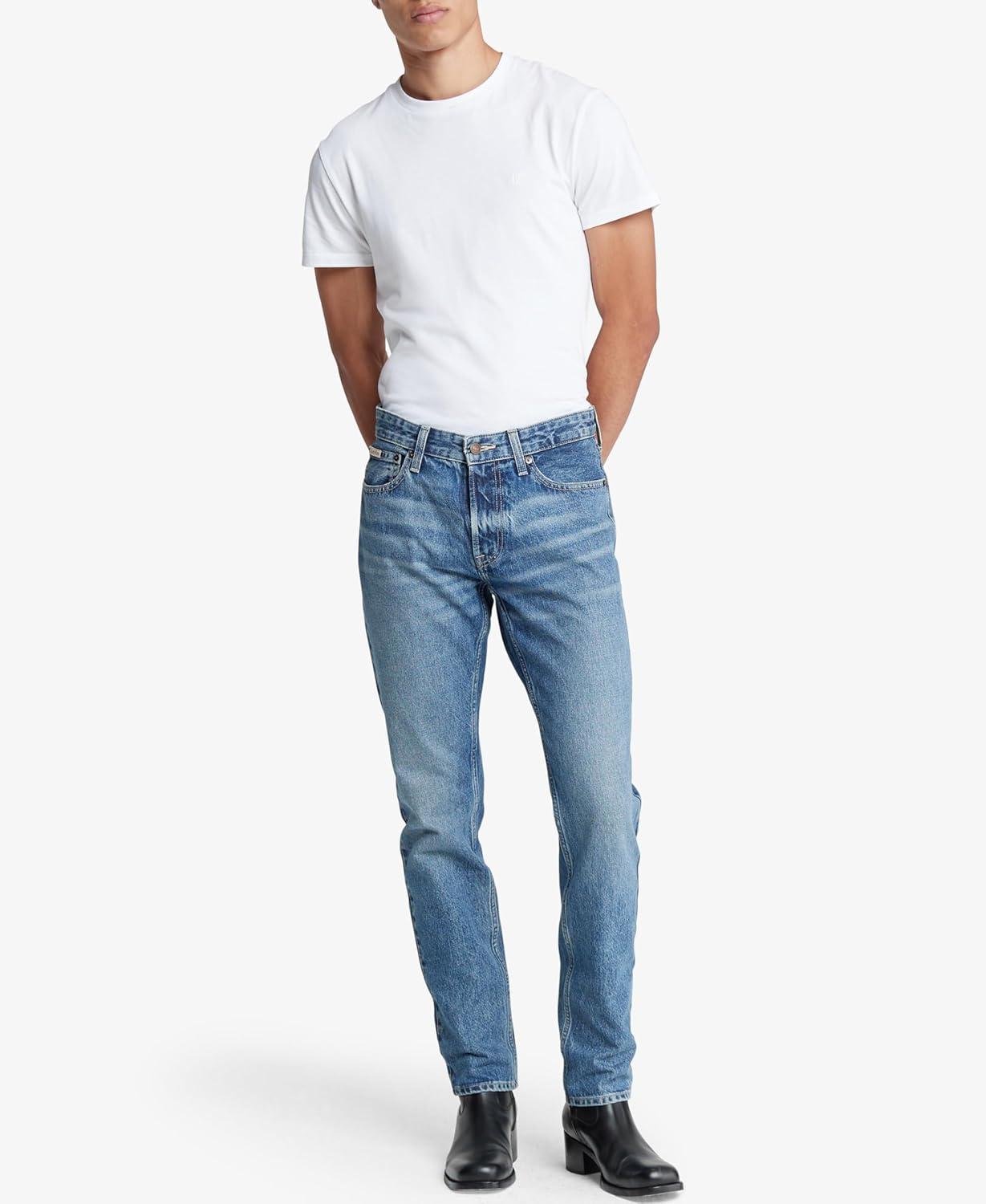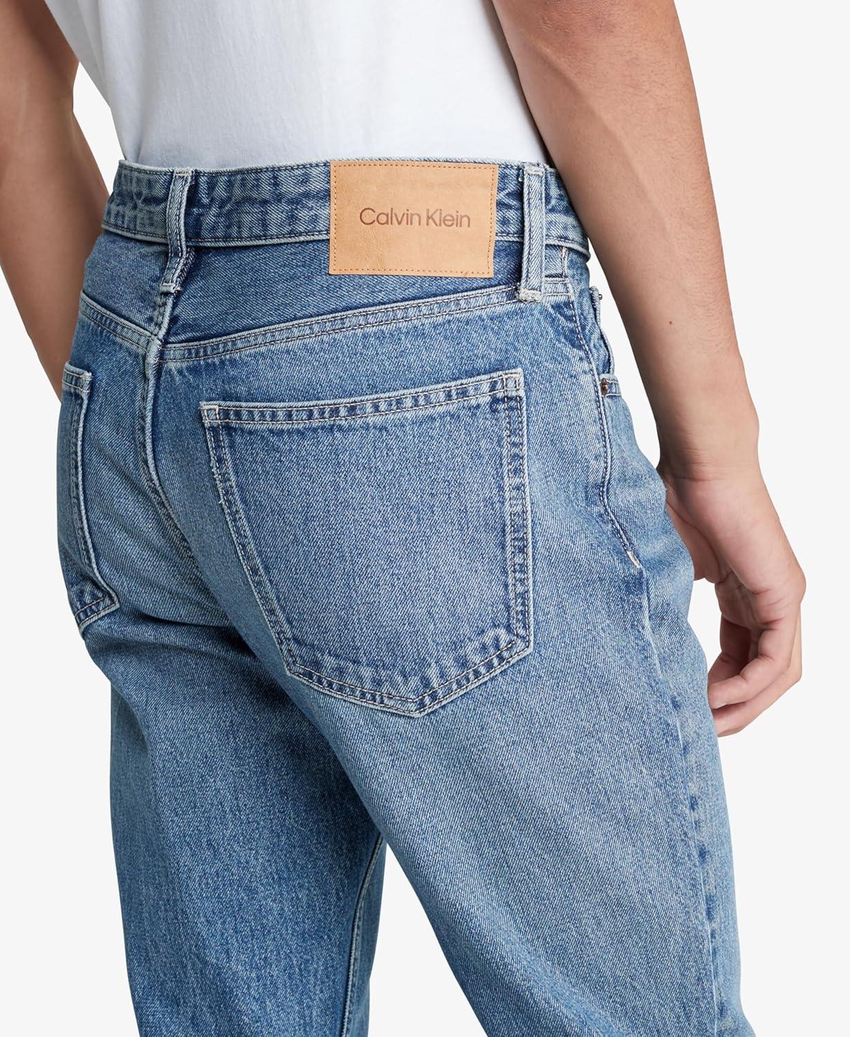 An iconic essential, our reimagined jeans are made with flexible stretch denim for enhanced movement and all-day comfort. Updated with signature metal logo hardware and back pocket omega topstitching, a Calvin Klein hallmark. Cut in a slim fit with considered detailing and reinforced seams.