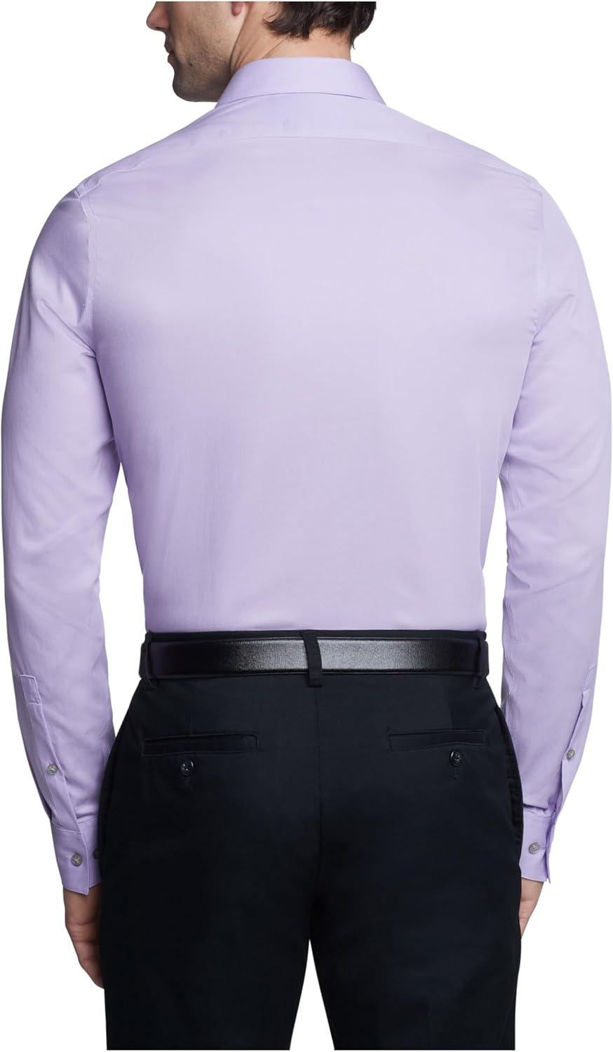 Non-iron, slim fit, textured solid dress shirt with a subtle sheen