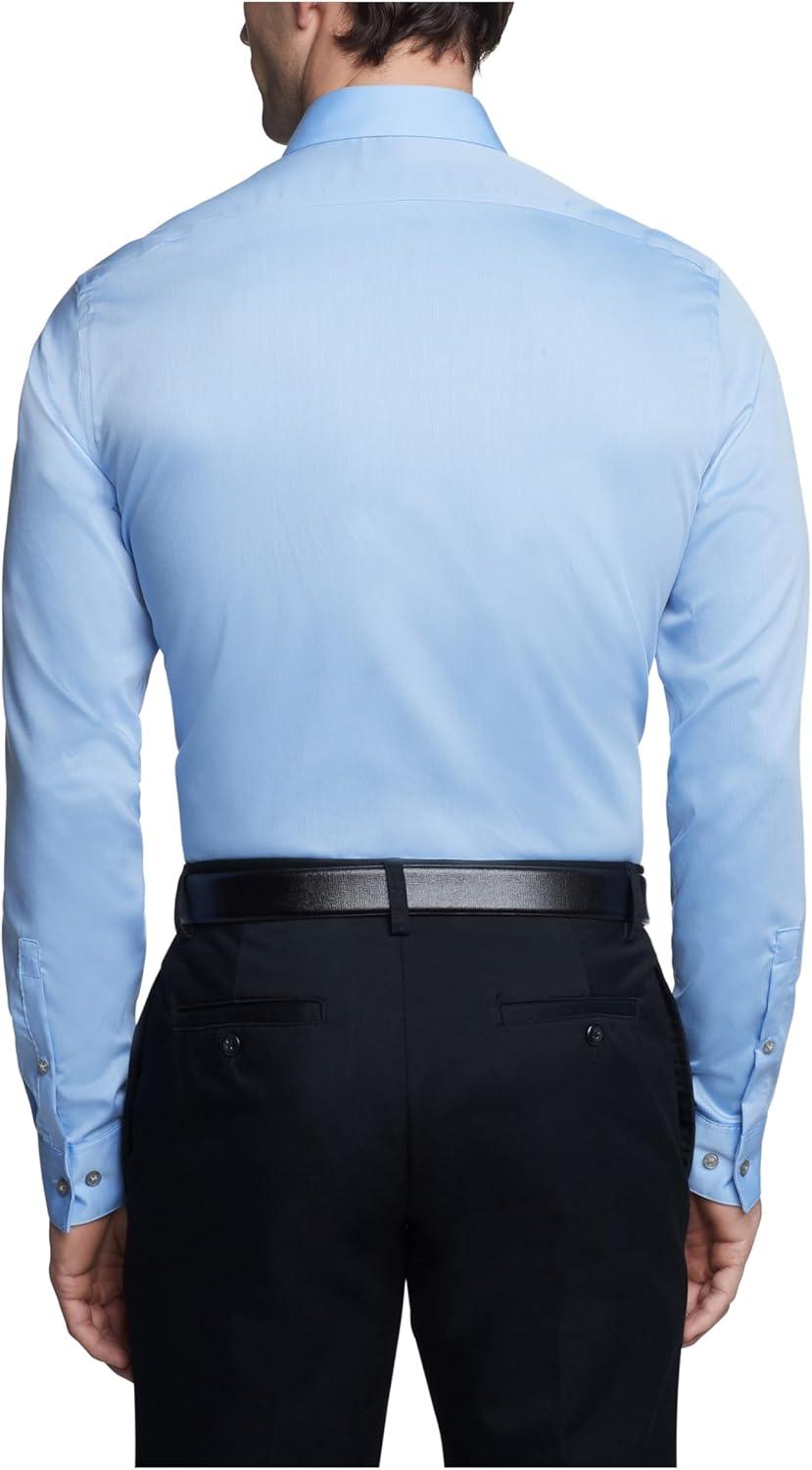 Non-iron, slim fit, textured solid dress shirt with a subtle sheen
