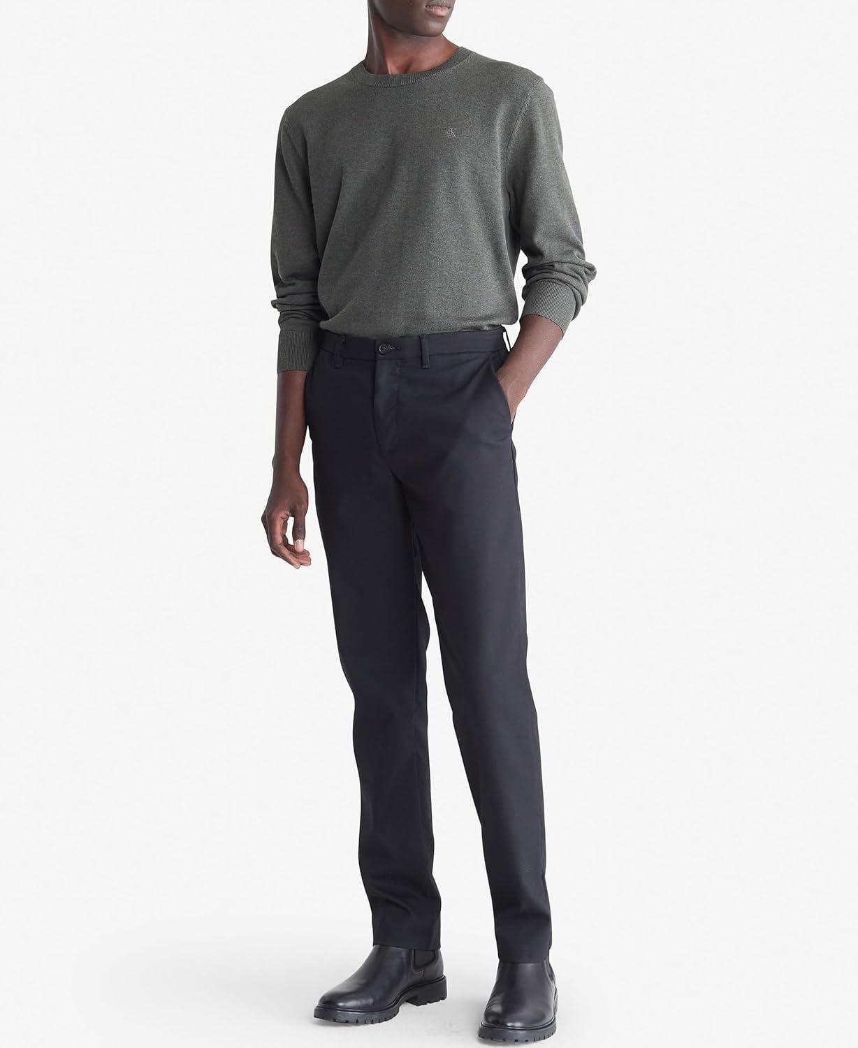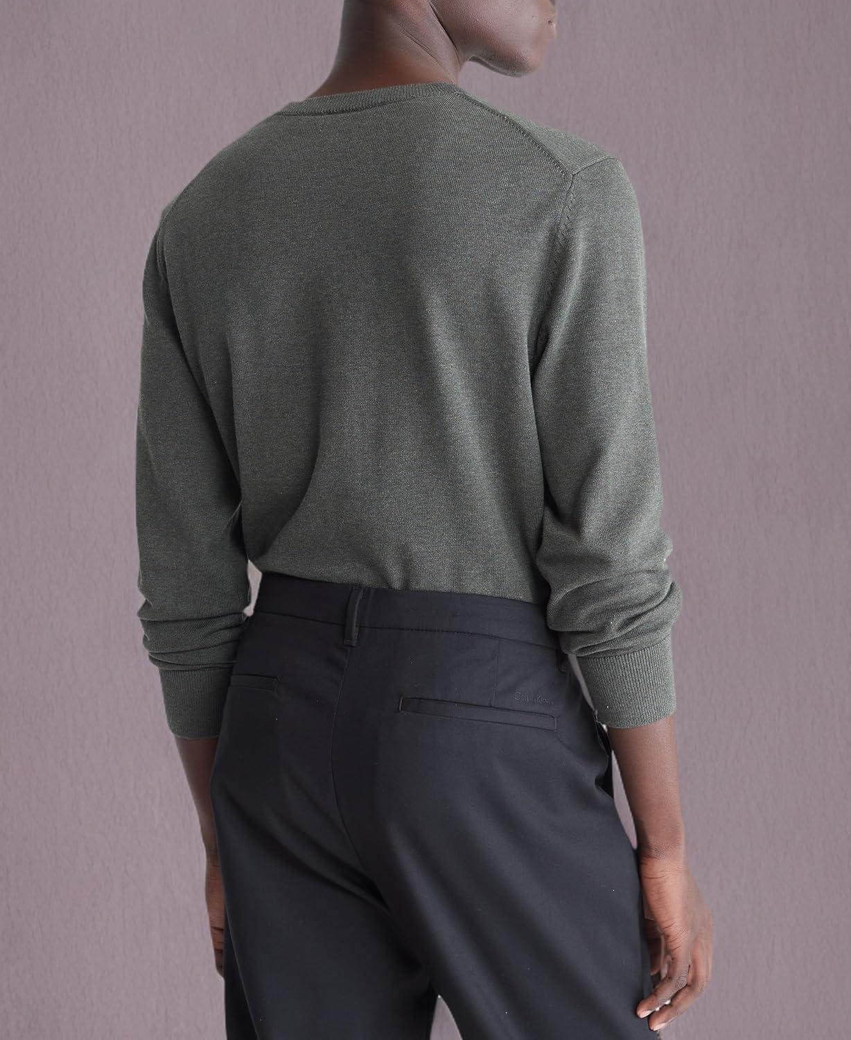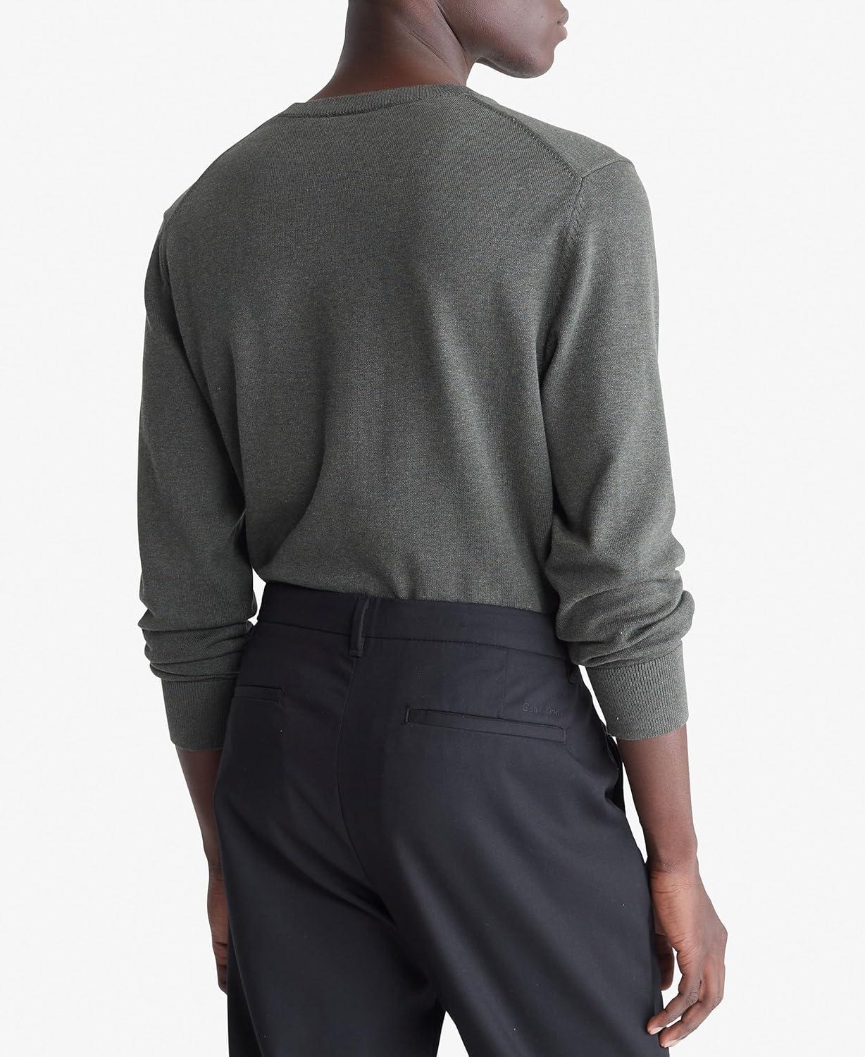 Calvin Klein Men’s Smooth Cotton Crewneck Sweater(Beluga Heather)