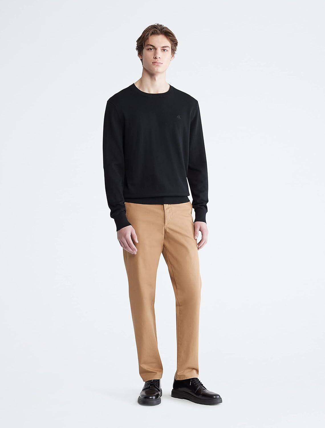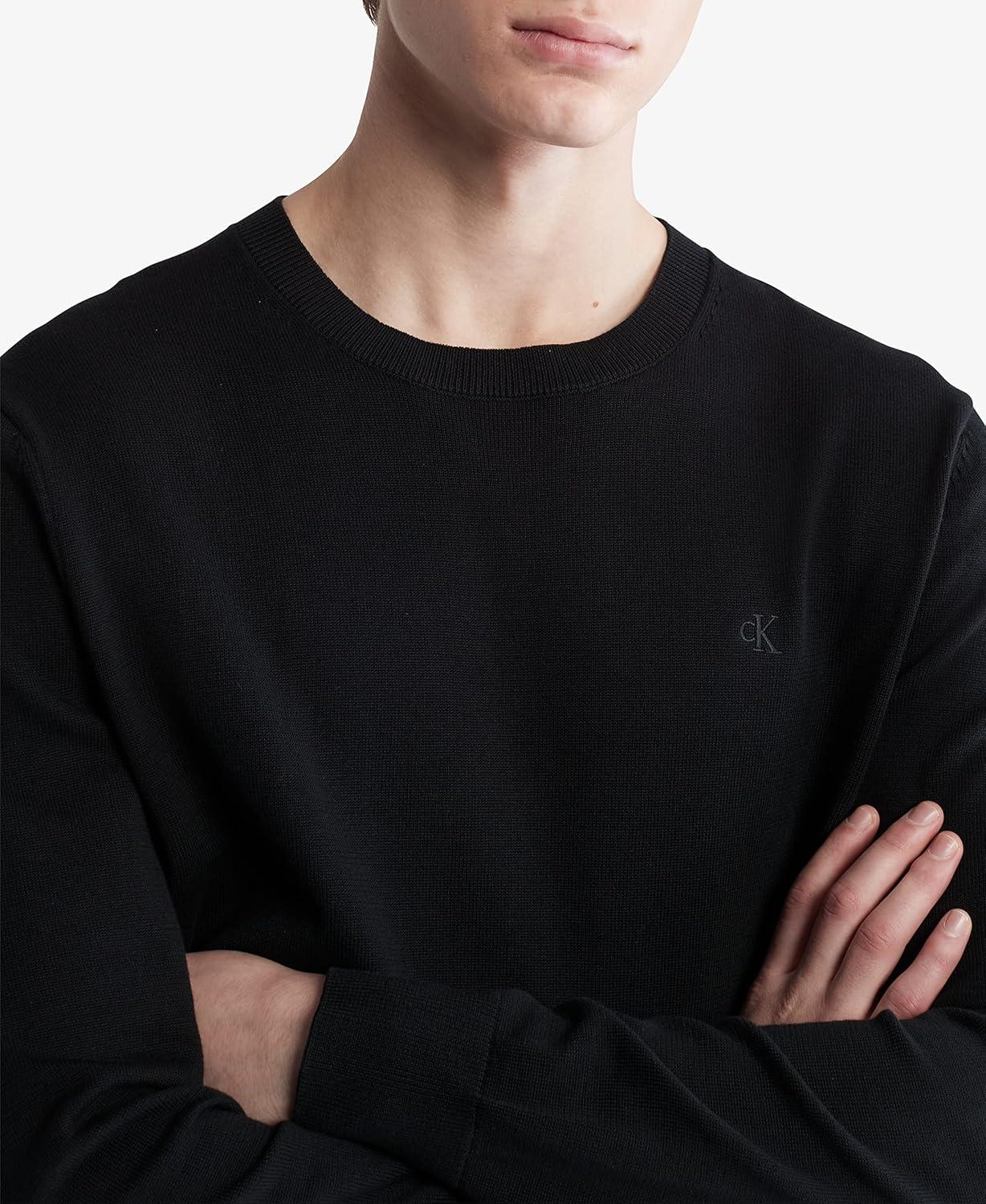 Crafted from 100% cotton, this Calvin Klein Sweater offers premium comfort for everyday wear. Made with long sleeves and a crewneck. Fitted with banded cuffs and finished with an embroidered CK monogram logo design at the upper chest.