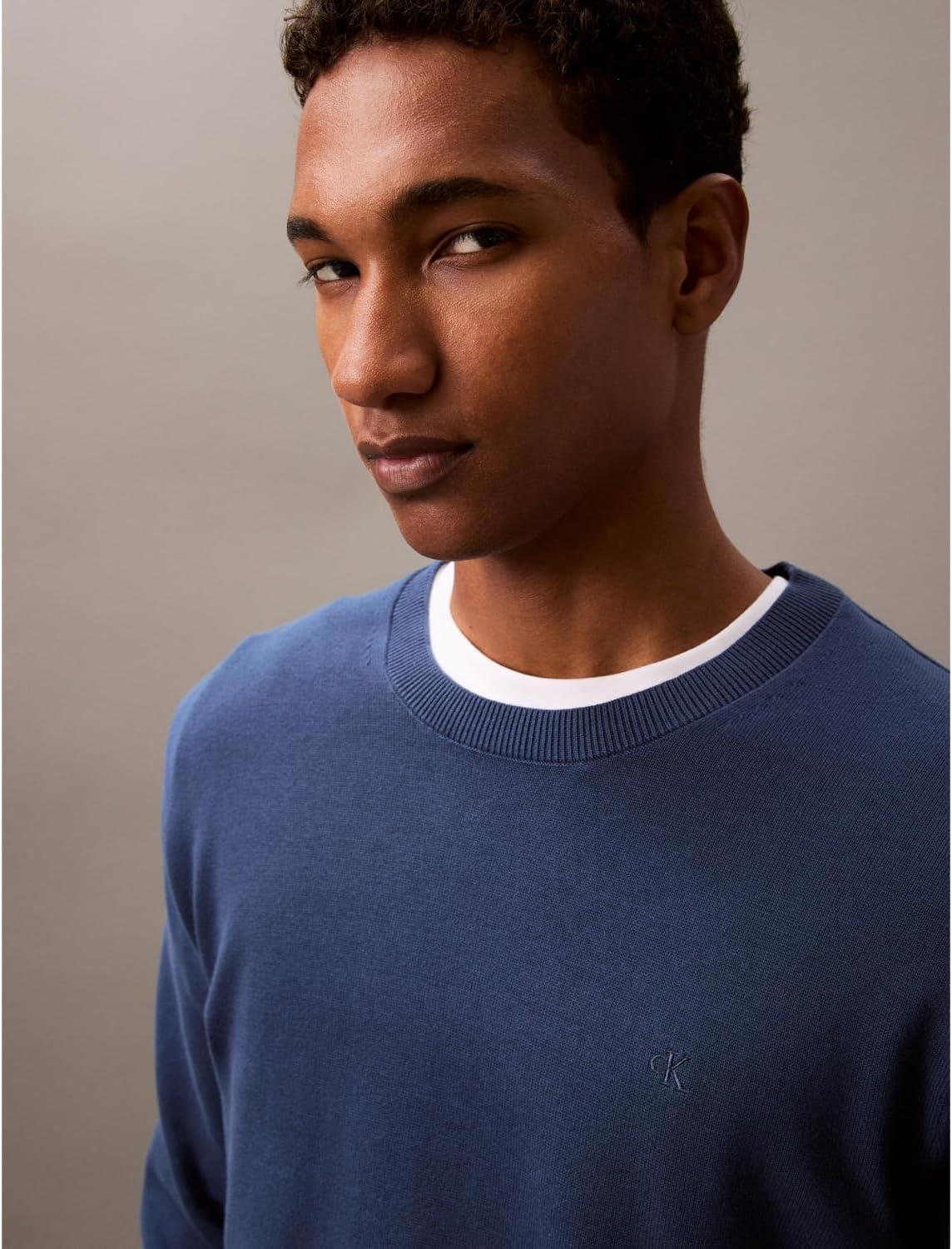 Calvin Klein Men’s Smooth Cotton Crewneck Sweater(Insignia Blue)