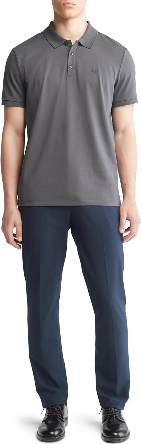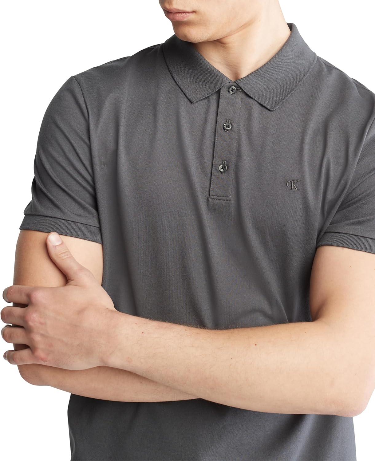 Calvin Klein Men’s Smooth Cotton Monogram Logo Polo Shirt(Forged Iron)