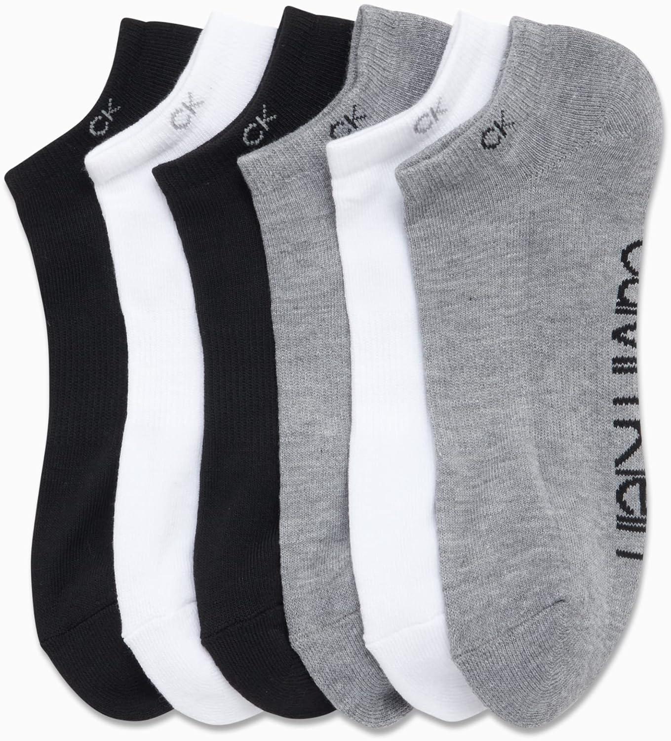 Calvin Klein Men’s Socks – No Show Low Cut Athletic Socks (6 Pack)(Grey/Black/White)