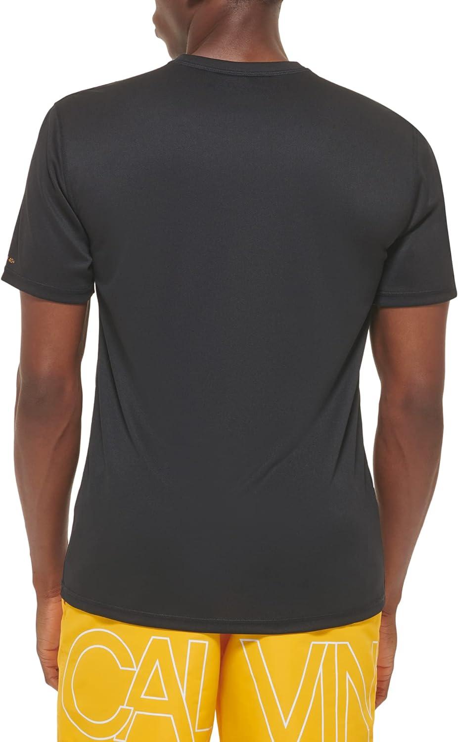 Calvin Klein Men’s Standard Light Weight Quick Dry Short Sleeve 40+ UPF Protection Active Top(Black Logo)
