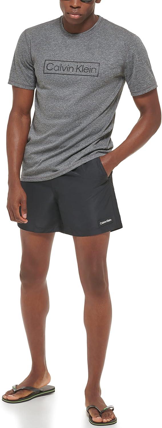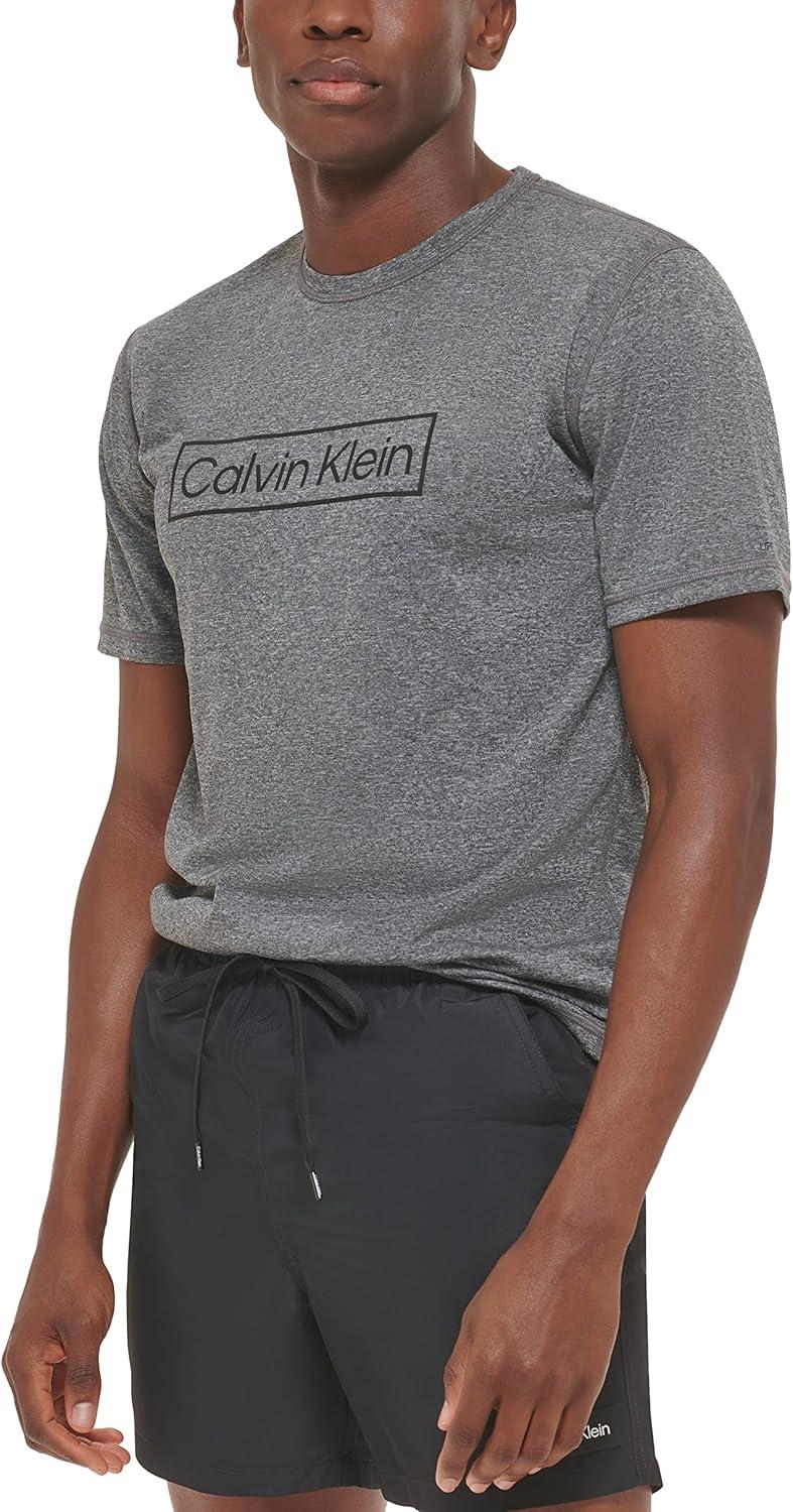Calvin Klein Men's Standard Light Weight Quick Dry Short Sleeve 40+ UPF Protection Active Top(Grey Heather Logo)