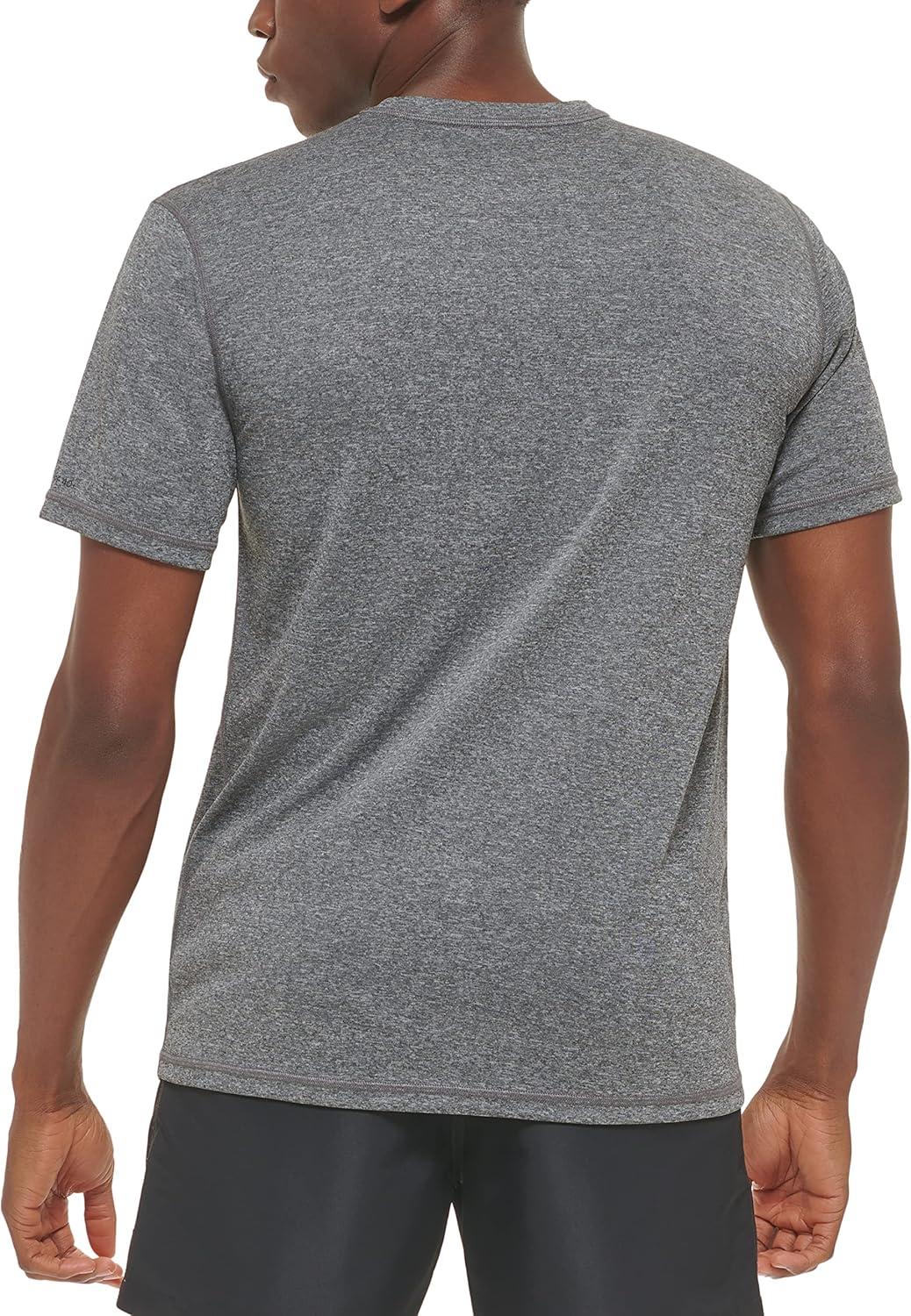 Calvin Klein Men’s Standard Light Weight Quick Dry Short Sleeve 40+ UPF Protection Active Top(Grey Heather Logo)