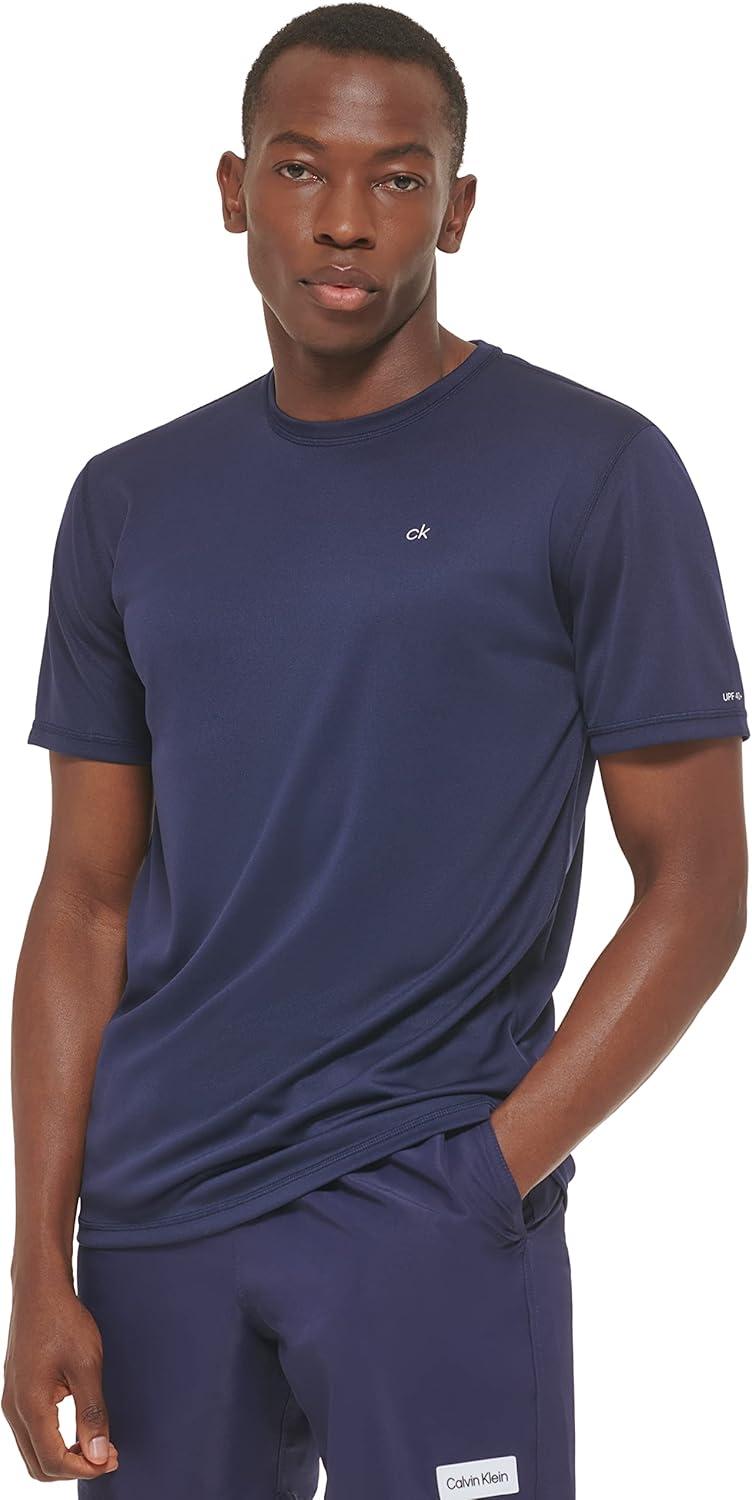 Calvin Klein Men's Standard Light Weight Quick Dry Short Sleeve 40+ UPF Protection Active Top(Navy)