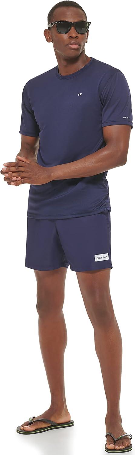 Calvin Klein Men’s Standard Light Weight Quick Dry Short Sleeve 40+ UPF Protection Active Top(Navy Logo)