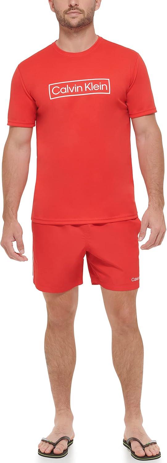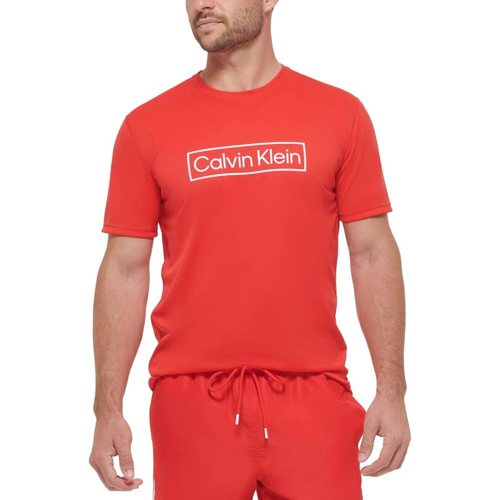 Calvin Klein Men’s Standard Light Weight Quick Dry Short Sleeve 40+ UPF Protection Active Top(Red Logo)