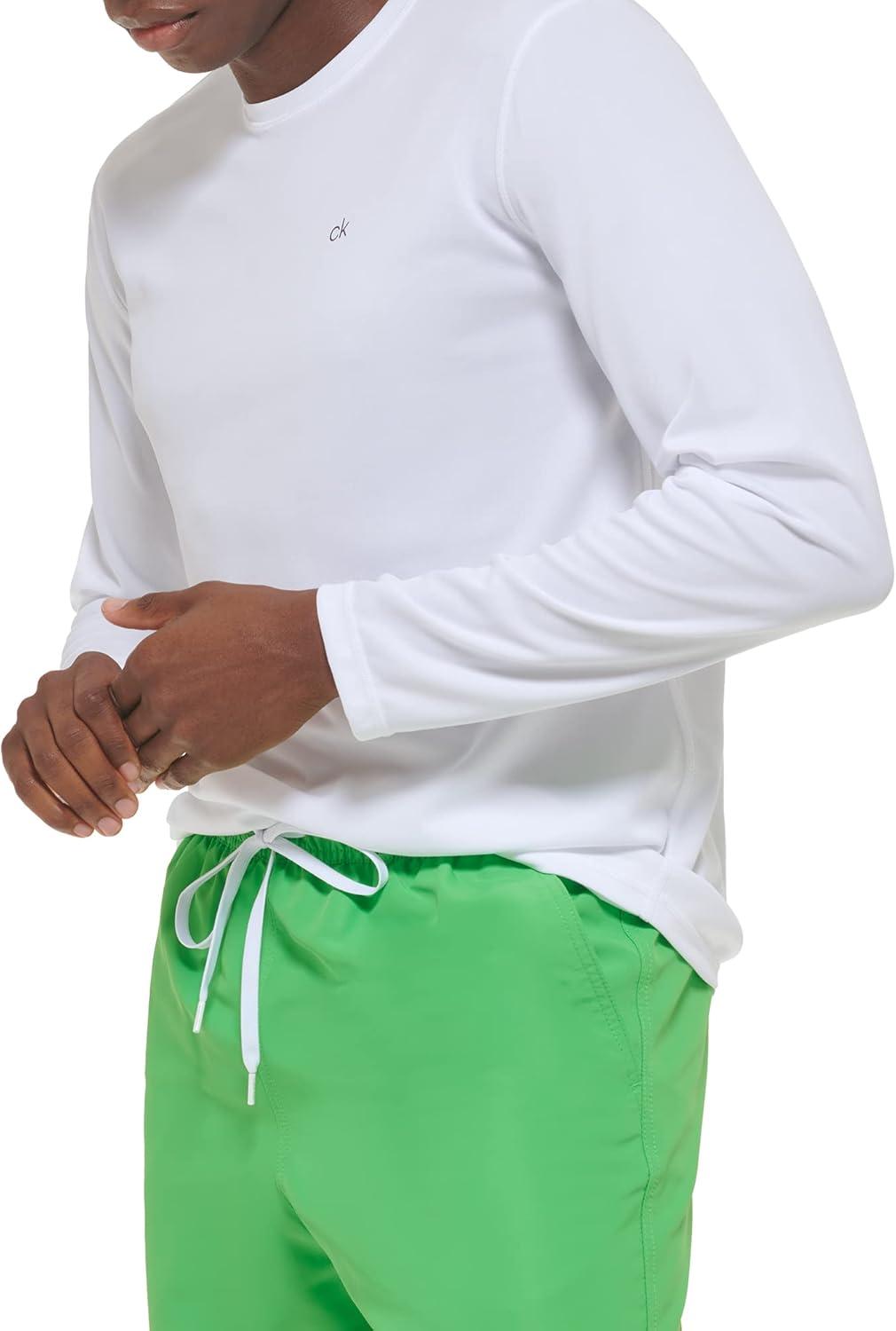 Calvin Klein Men’s Standard UPF 40+ Long Sleeve Quick Dry Swim Shirt(White)