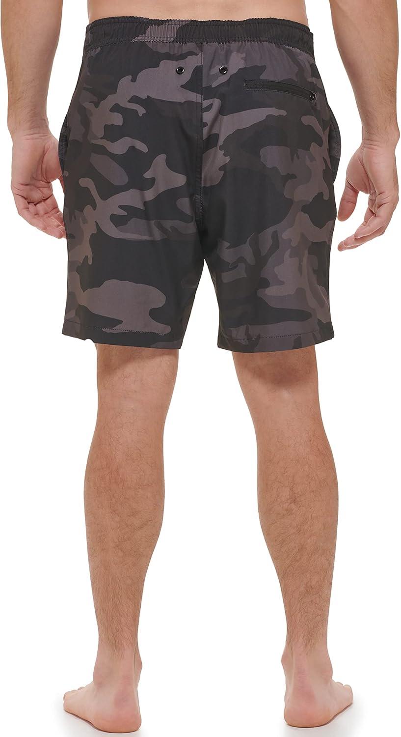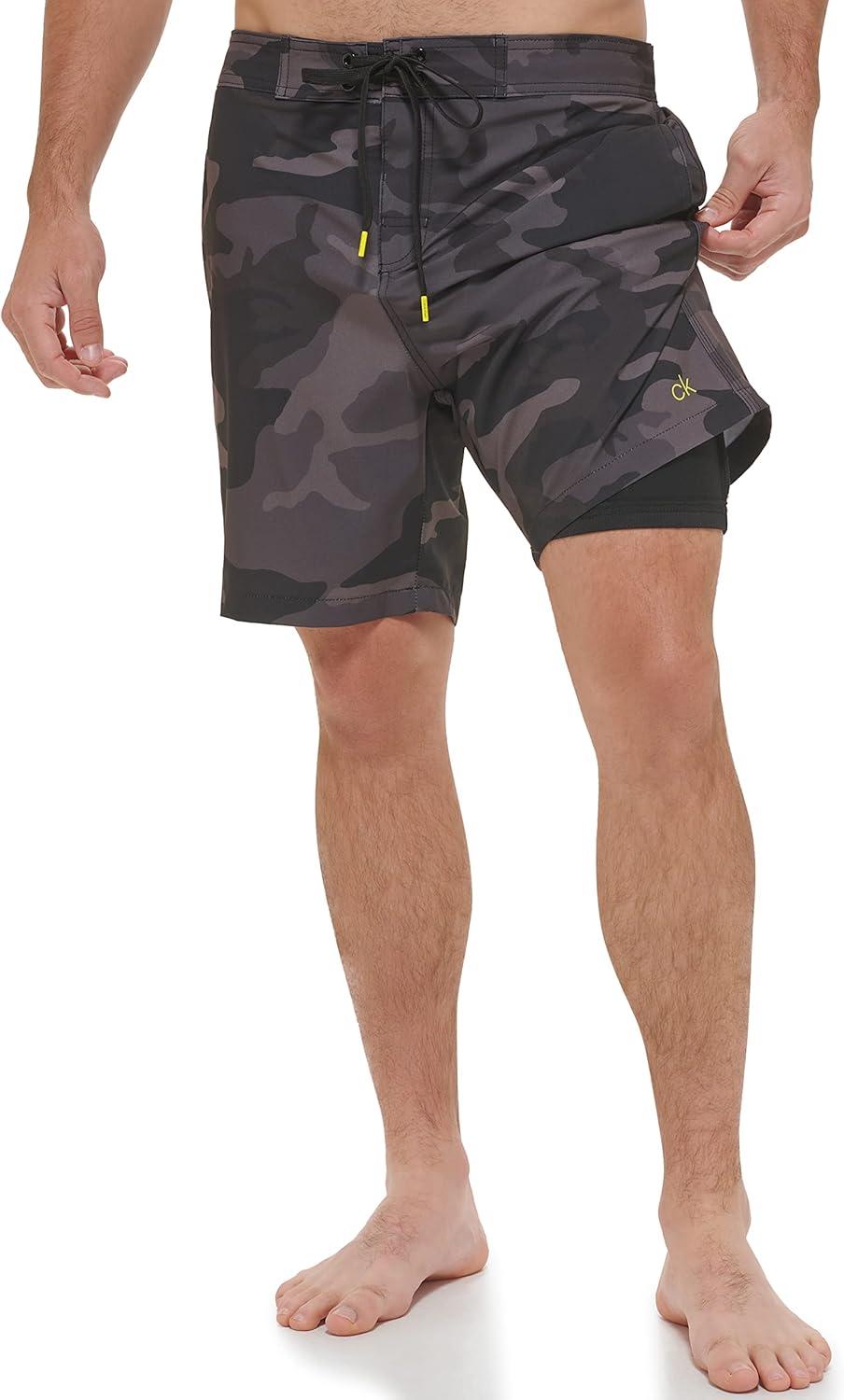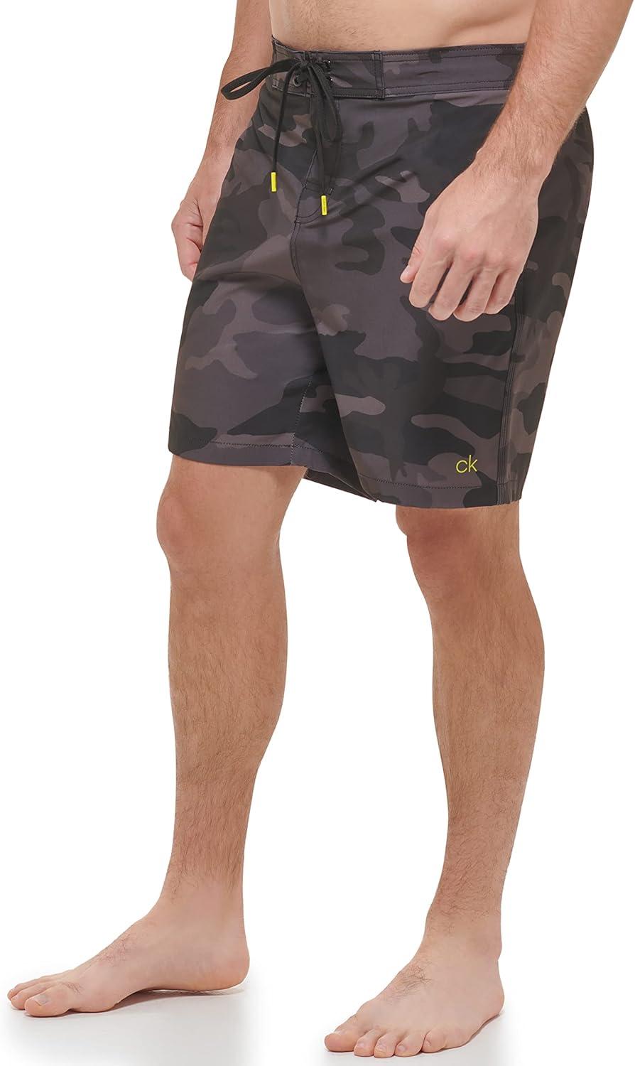 Calvin Klein Men's Standard Uv Protected Quick Dry Drawstring Patterned Swim Trunk(Black Camo)