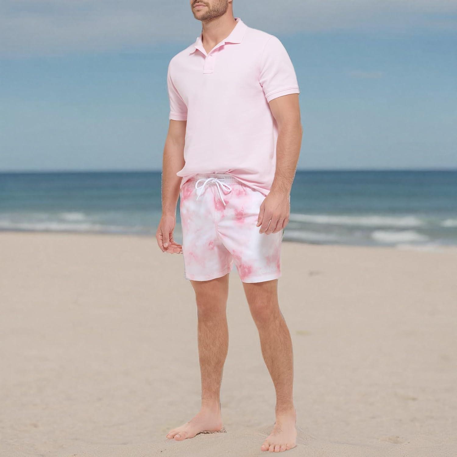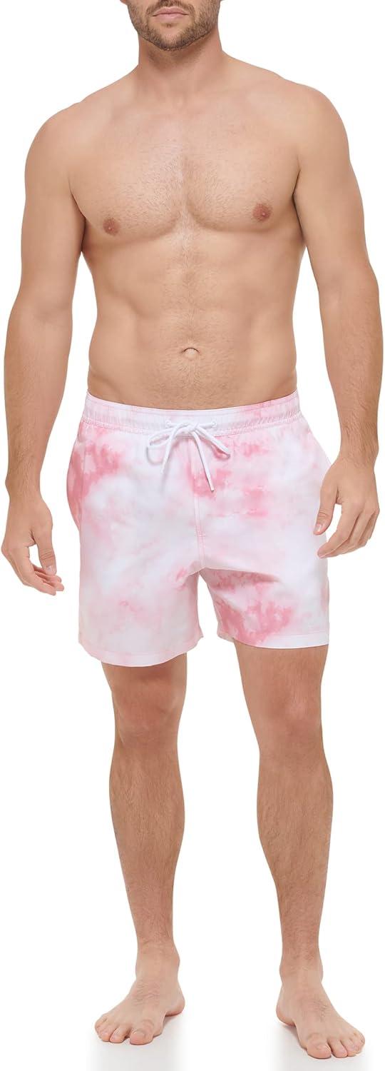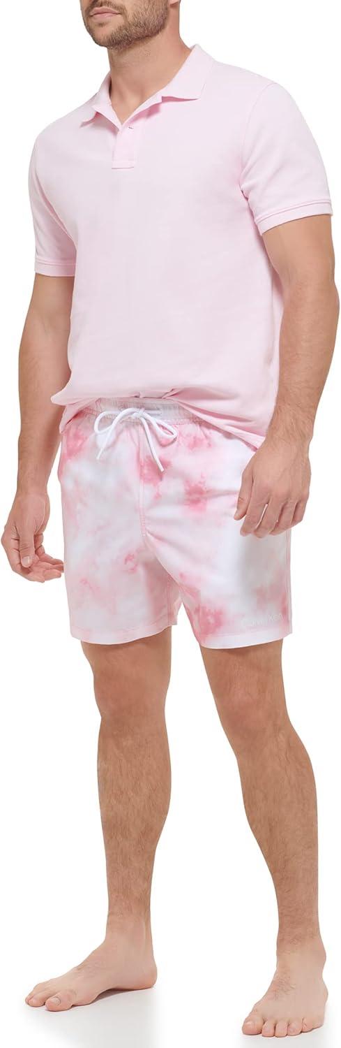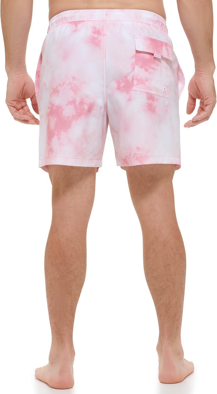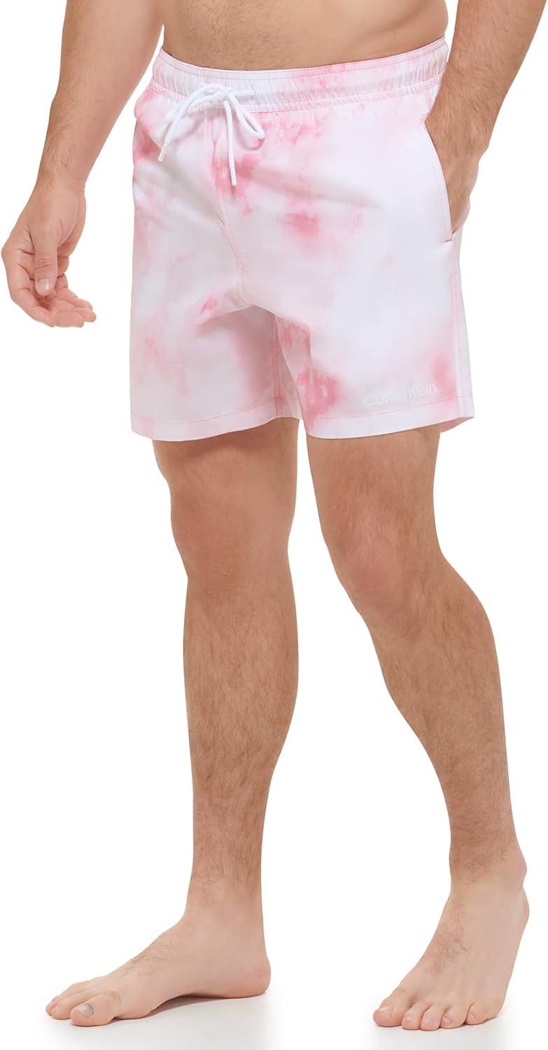 Calvin Klein Men's Standard Uv Protected Quick Dry Drawstring Patterned Swim Trunk(Pink Watercolor)