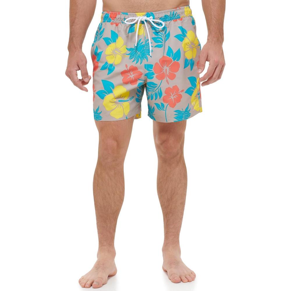 imageCalvin Klein Mens Standard Uv Protected Quick Dry Drawstring Patterned Swim TrunkTan Multi Aloha