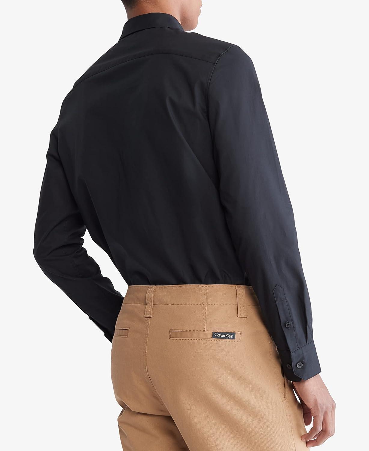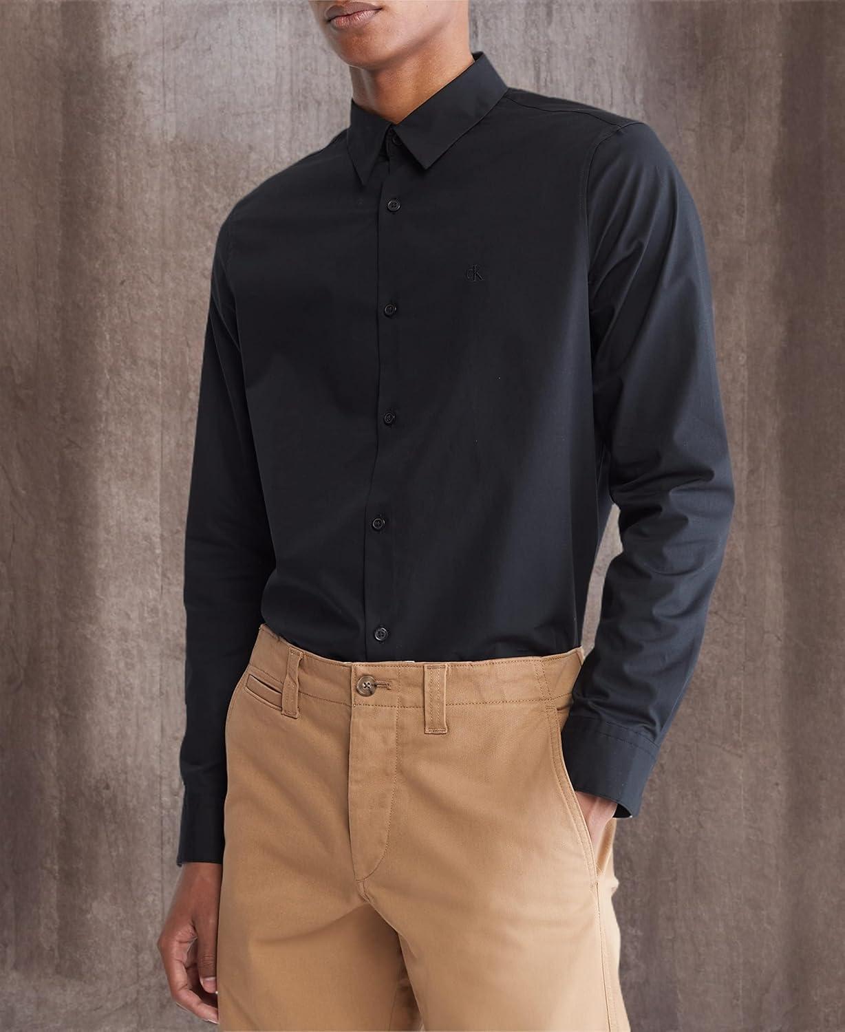 Calvin Klein Men’s Stretch Cotton Monogram Logo Button Down Shirt(Black Beauty)