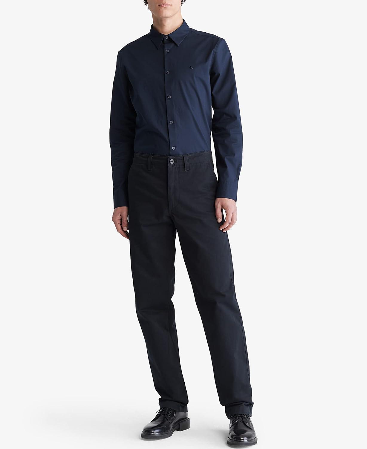 Calvin Klein Men’s Stretch Cotton Monogram Logo Button Down Shirt(Black Beauty)