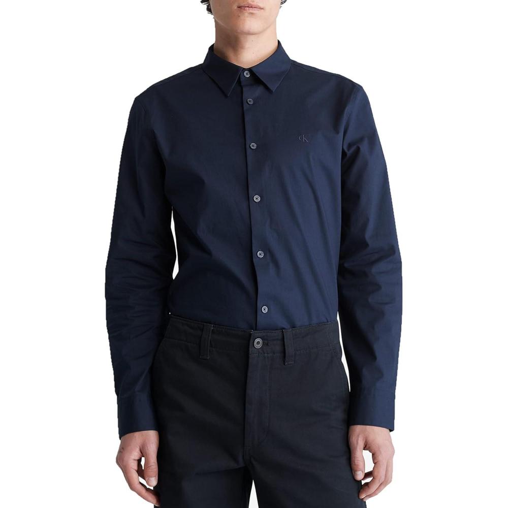 Tailored and refined, this long sleeve woven shirt is made with a solid design in an extra soft cotton stretch blend. Designed with a compact monogram logo at the chest for an iconic look, button-front closures and barrel cuffs for an elevated and versatile Calvin Klein button-down essential.