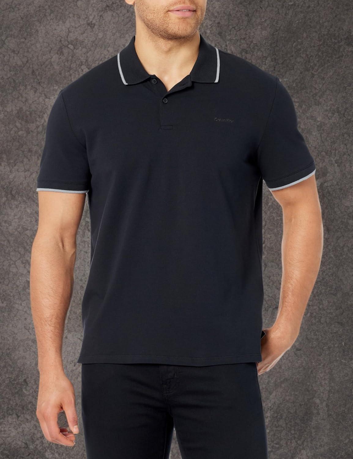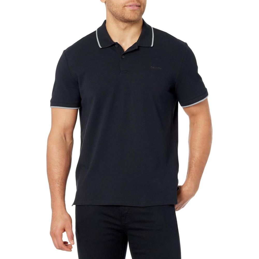 A classic Calvin Klein Polo. Made with a solid look and a tipped collar, this Polo is crafted from a piqué cotton blend with added stretch for all-day comfort.