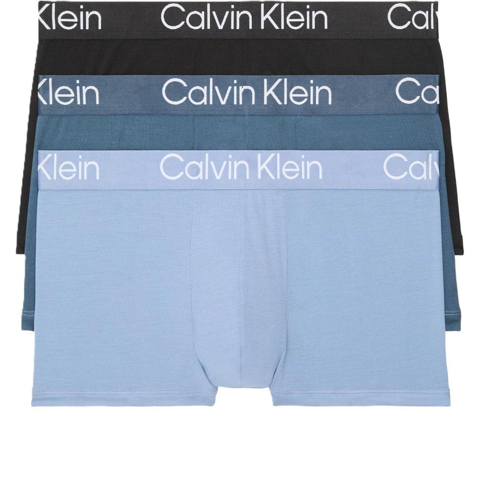 Calvin Klein Men’s Ultra Soft Modern 3-Pack Trunk(Black Troposphere Hemisphere Blue)
