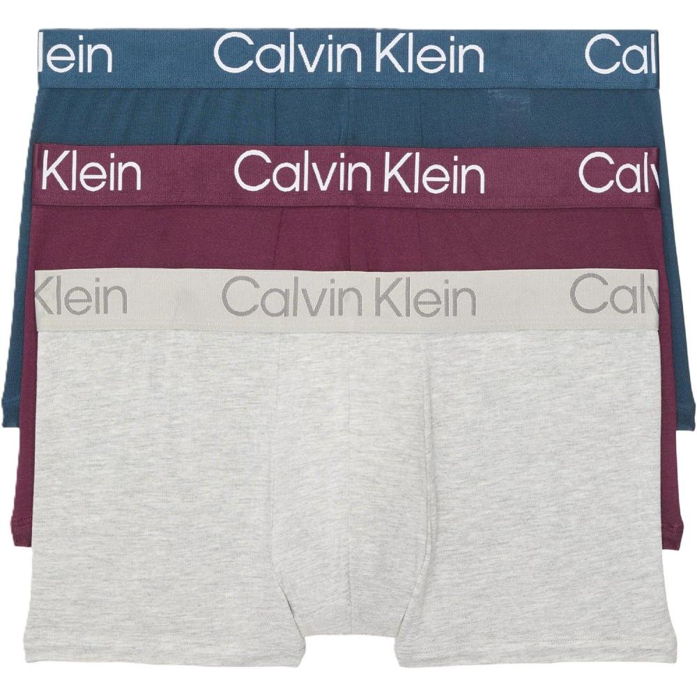 Calvin Klein Men's Ultra Soft Modern 3-Pack Trunk(Grey Heather Navy Stone Mauve Wine)