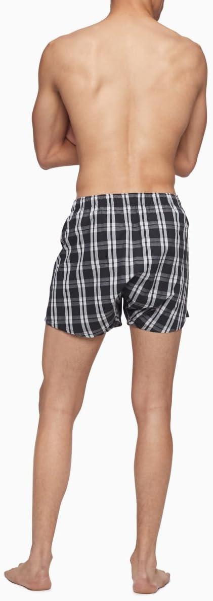 Calvin Klein Men’s Underwear Cotton Classics 3-Pack Woven Boxer(Black/Morgan Plaid Black/Montague Stripe Black)