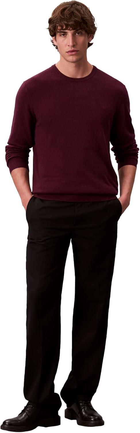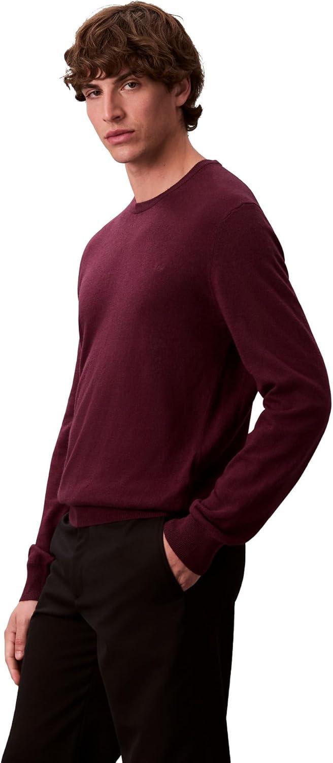 Calvin Klein Mens Wool Blend Crewneck Sweater(Wine Tasting)