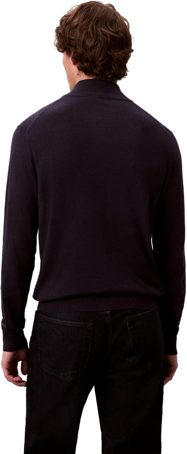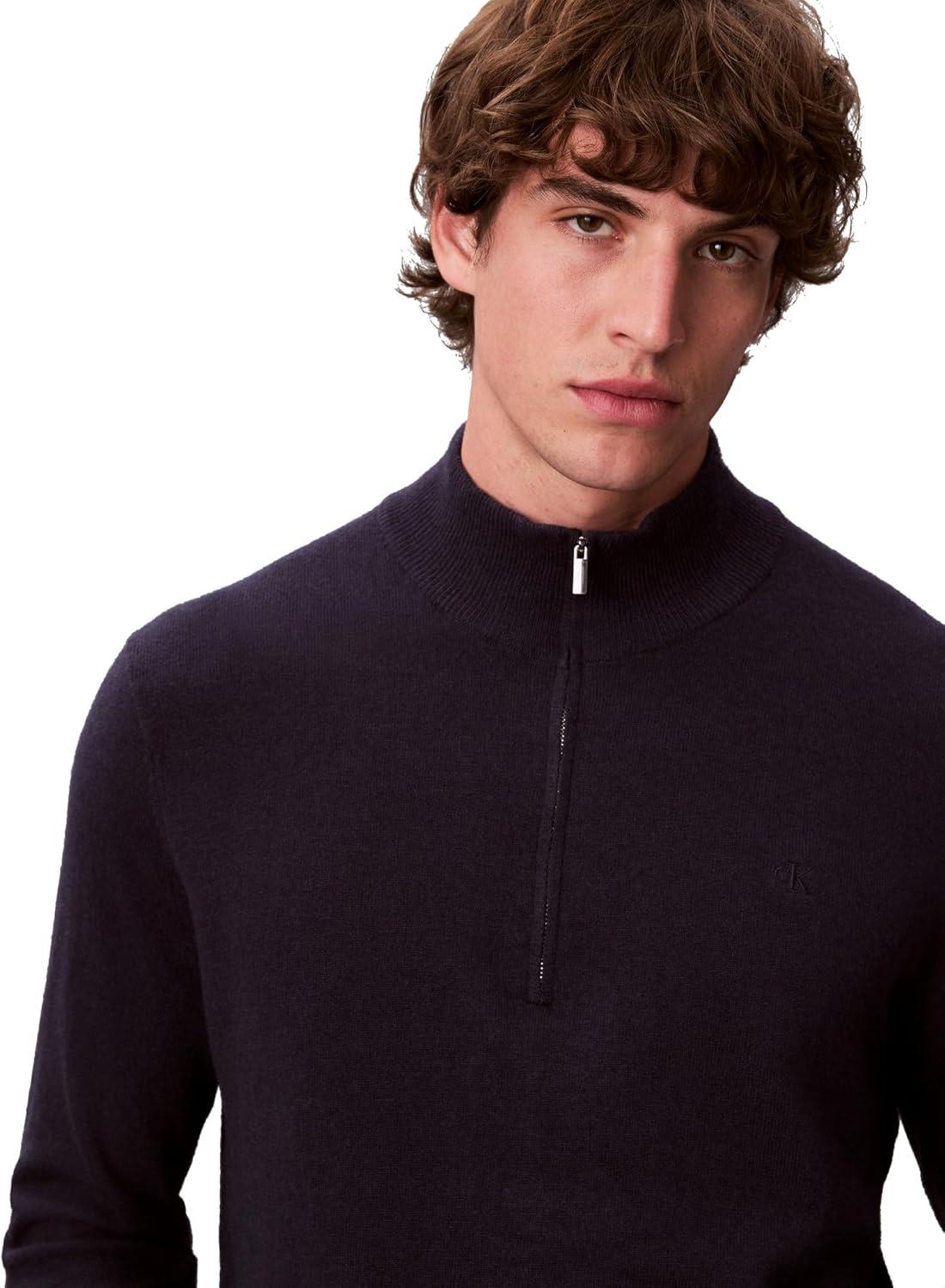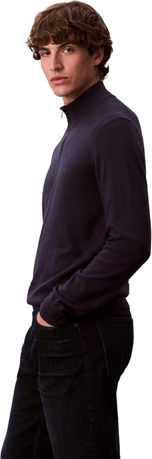 Stay warm in style with this Calvin Klein men’s sweater, crafted from a premium wool blend for extra comfort and reliable warmth. Designed with a quarter zip, this essential layer features long sleeves, ribbed trim, and a compact CK logo embroidery for a clean, modern look. Perfect for workdays, weekends, or layering under outerwear, it delivers a versatile style with a refined finish.