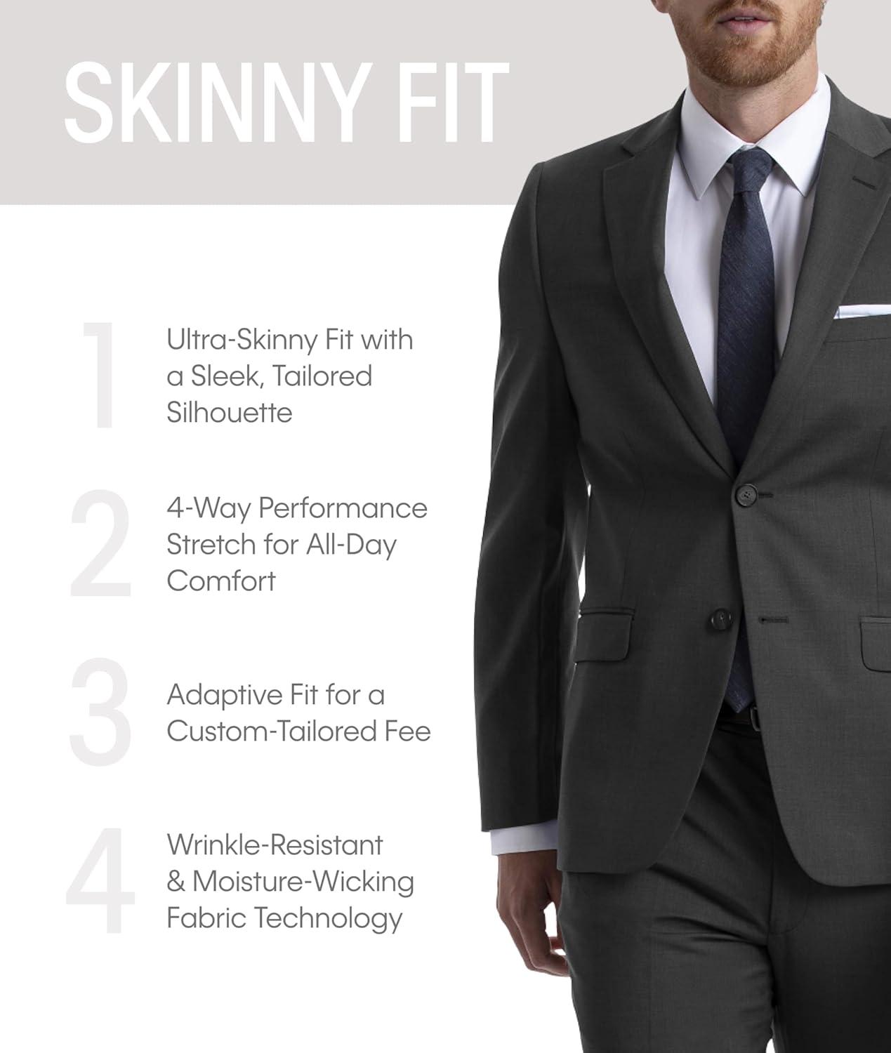 Calvin Klein Premium Skinny Fit Men’s Suit Separates | Performance Stretch Fabric(Charcoal)