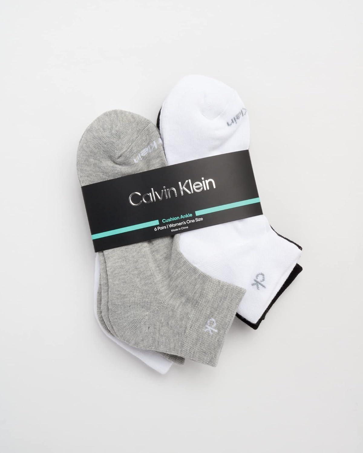 Calvin Klein Quarter Socks for Women – 6 Pack Cushioned Ankle Socks – Quarter Cut, Breathable, Lightweight, Athletic Design(Black/White/Grey)