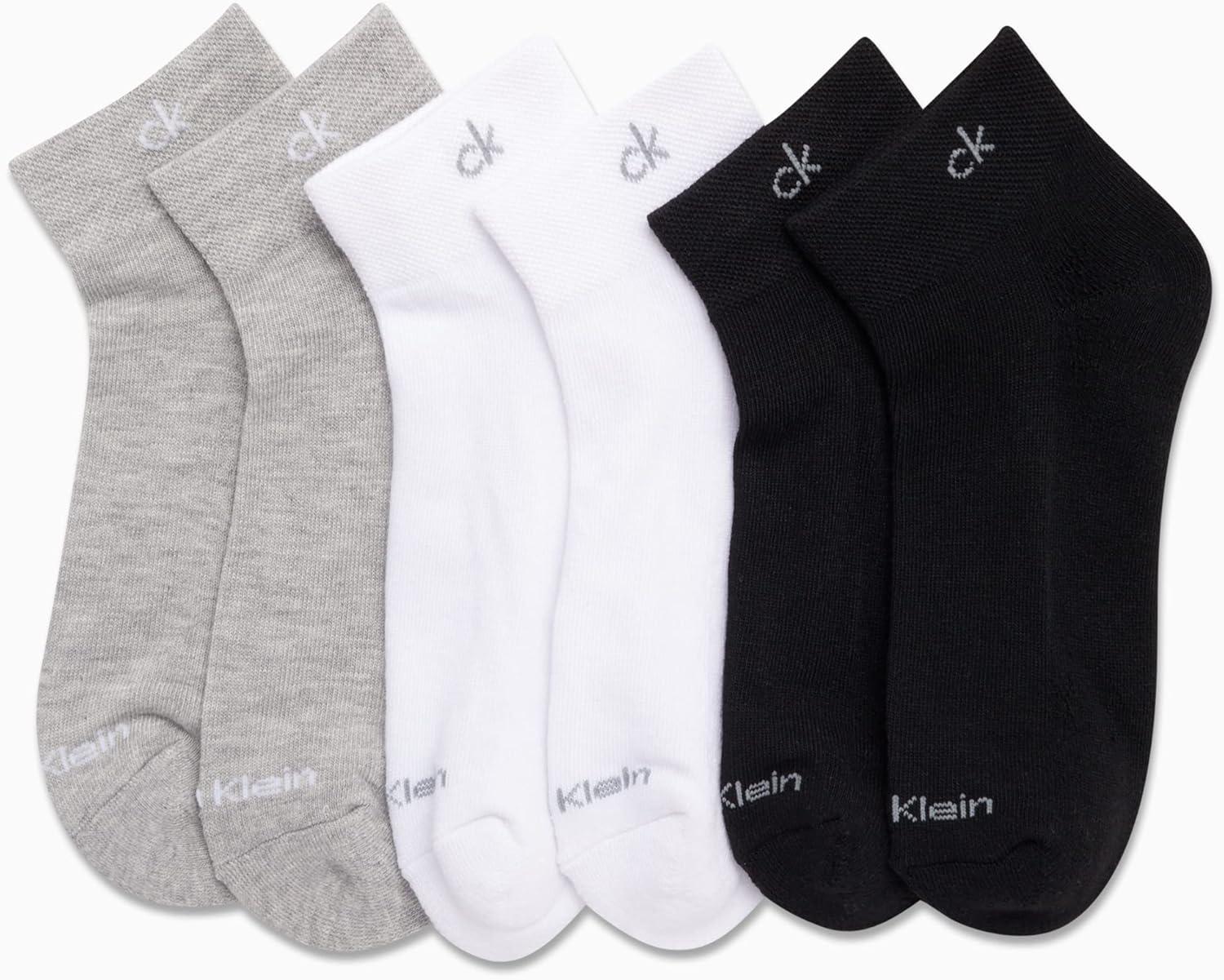 Calvin Klein Quarter Socks for Women - 6 Pack Cushioned Ankle Socks - Quarter Cut, Breathable, Lightweight, Athletic Design(Black/White/Grey)