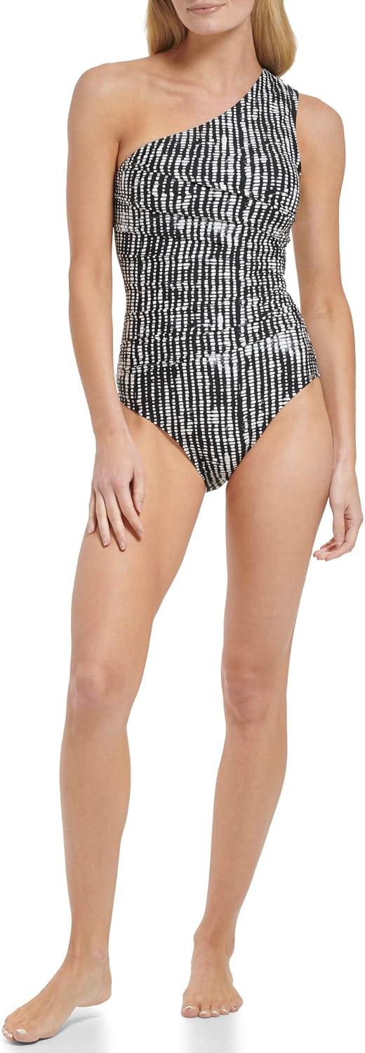 This Calvin Klein womens LIFESTYLE ONE PIECE is a One shoulder strap Starburst pleating Removable soft cups