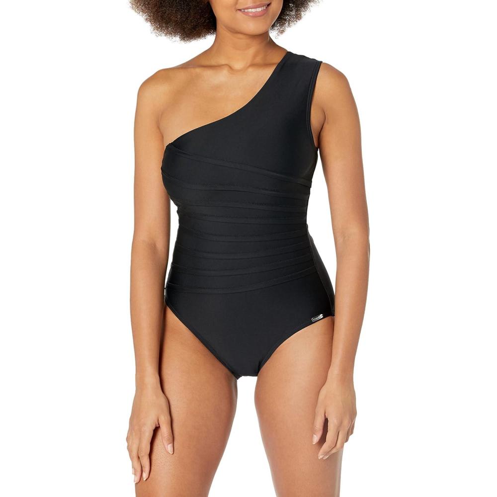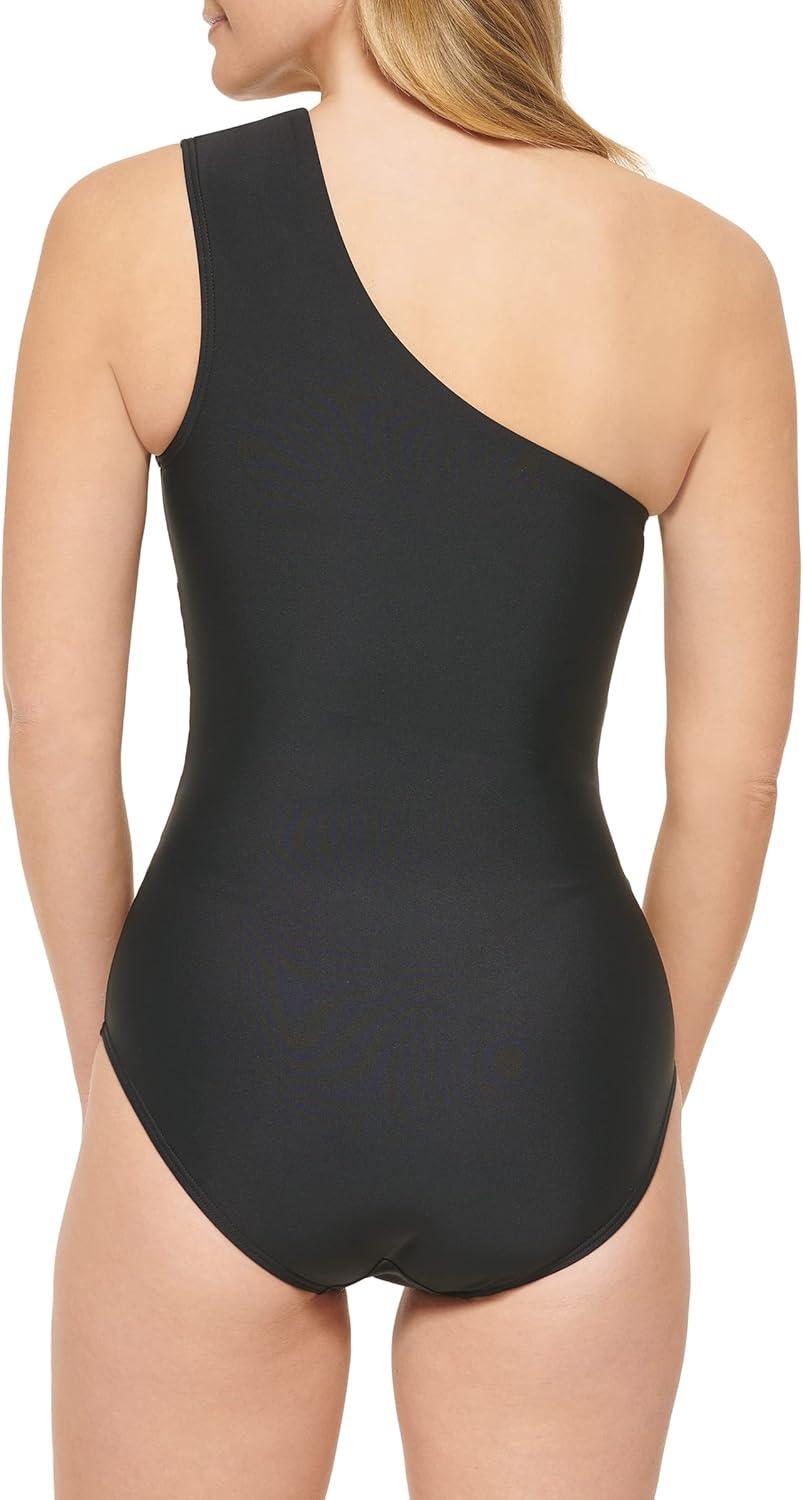 This Calvin Klein womens LIFESTYLE ONE PIECE is a One shoulder strap Starburst pleating Removable soft cups