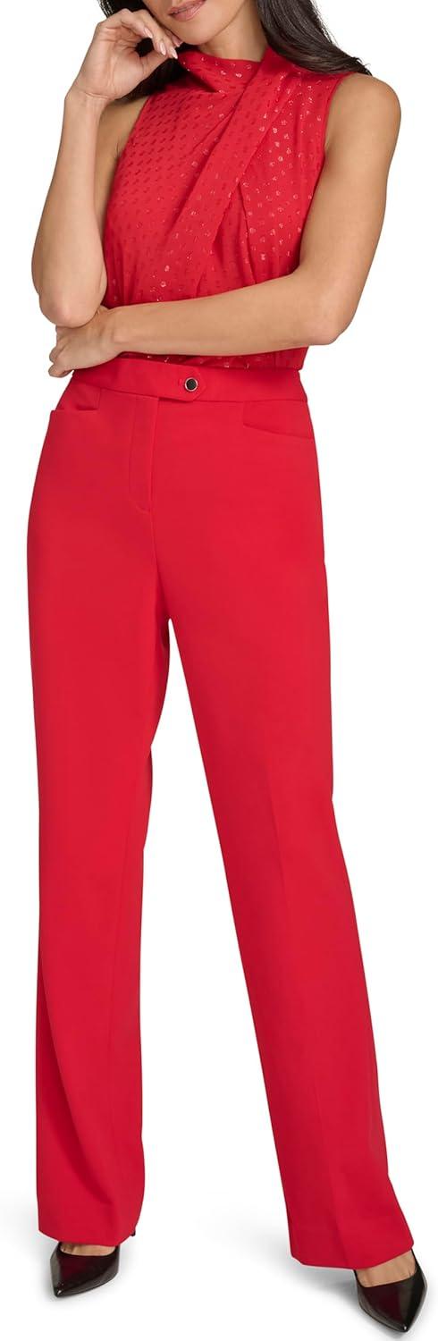Calvin Klein Straight-Leg Classic Business Casual Pants for Women(Red)