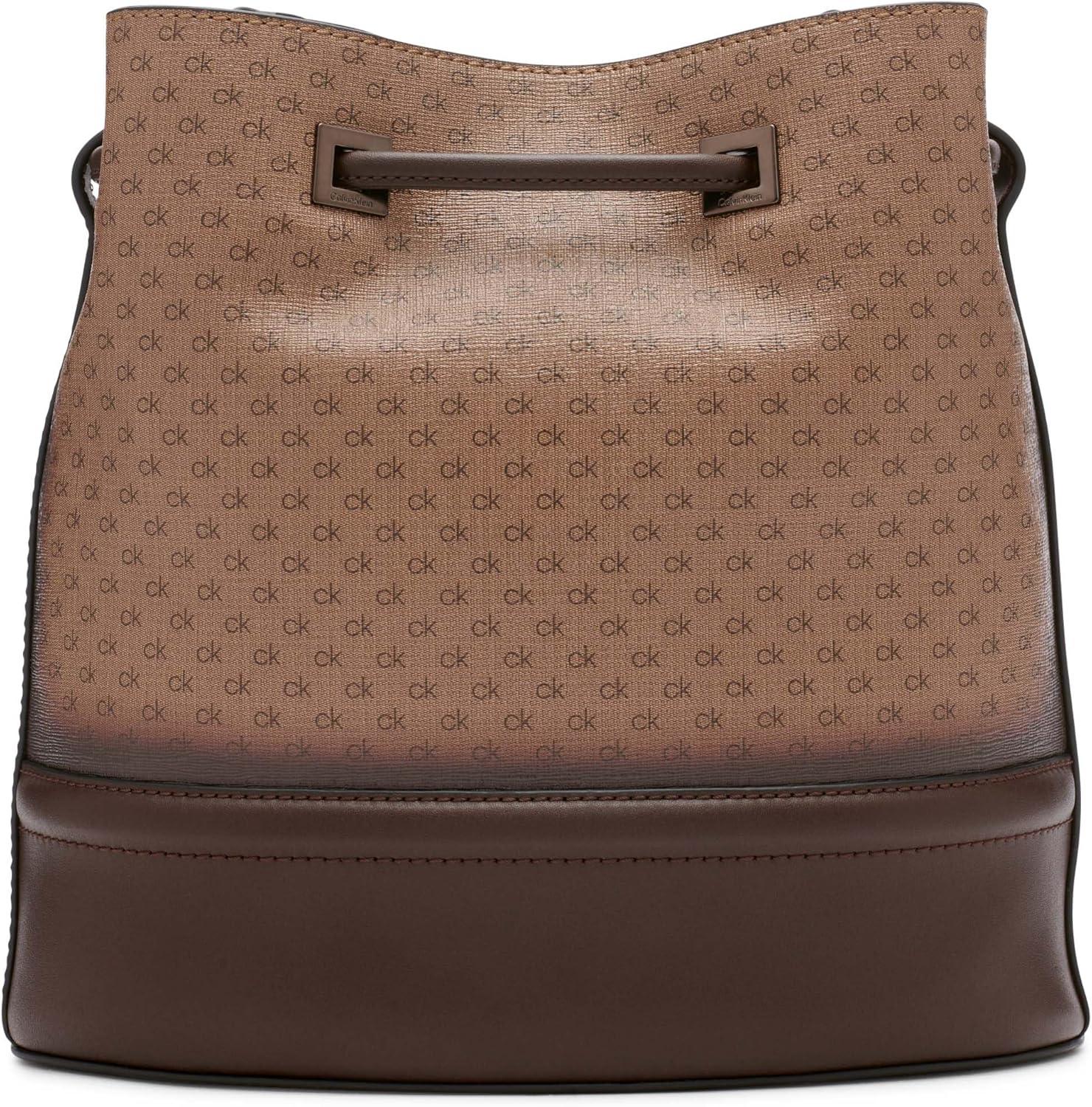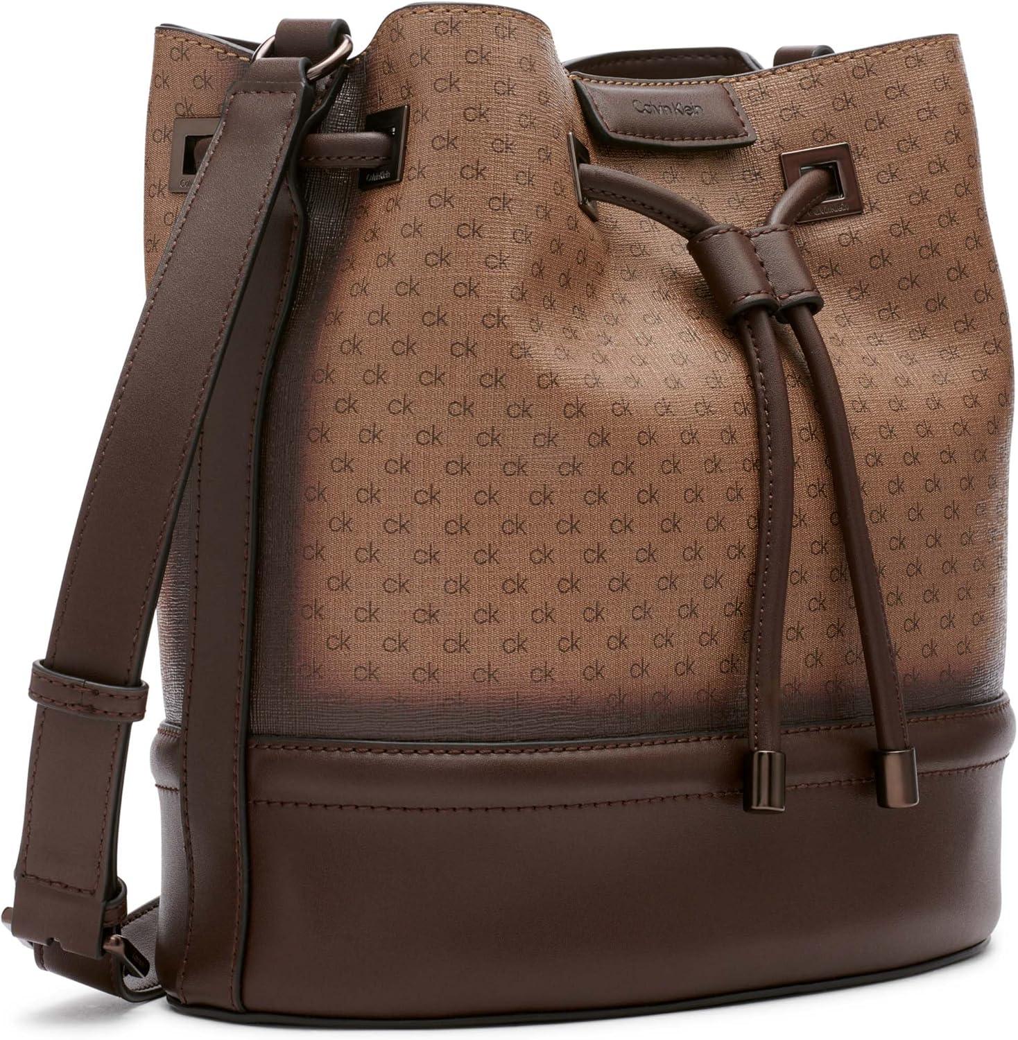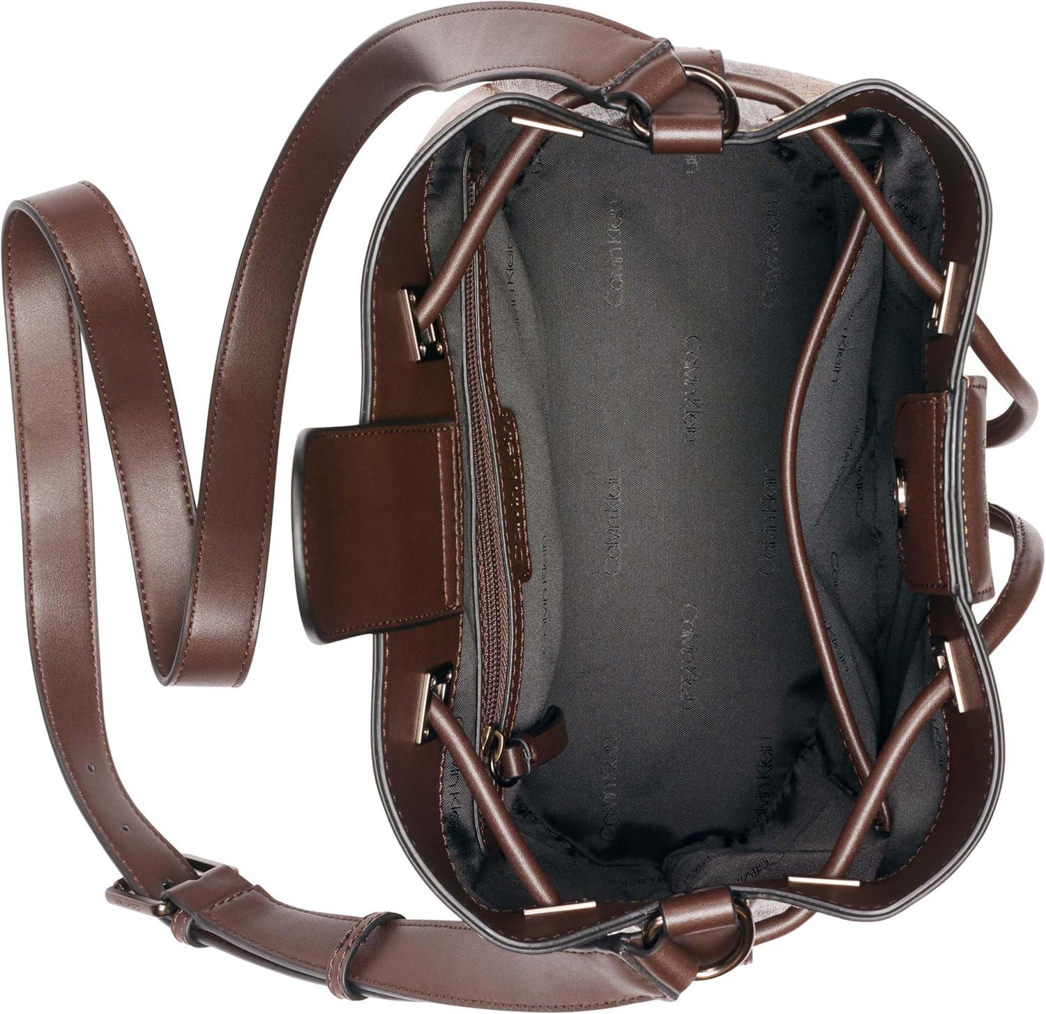 Calvin Klein Women's Ash Crossbody Bag – Vegan Leather, Monogram, 2 Pockets(Khaki/Brown/Java)