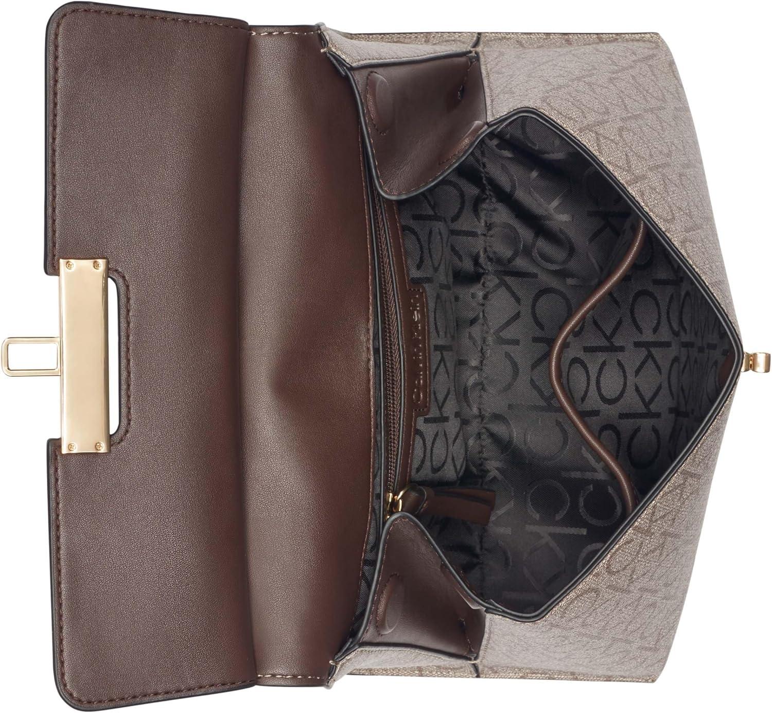 imageCalvin Klein Womens Becky Mini Crossbody Bag  2 in 1 Vegan Leather 2 PocketsAlmondTaupeJava