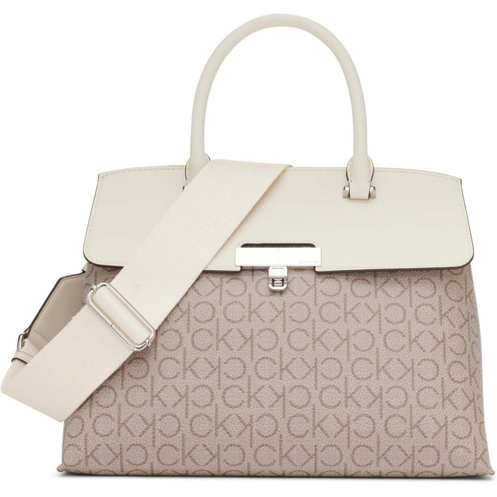 imageCalvin Klein Womens Becky Turn Lock Satchel  2 in 1 Vegan Leather 3 PocketsAlmondTaupeWhite
