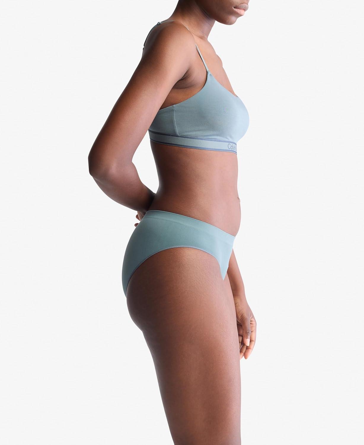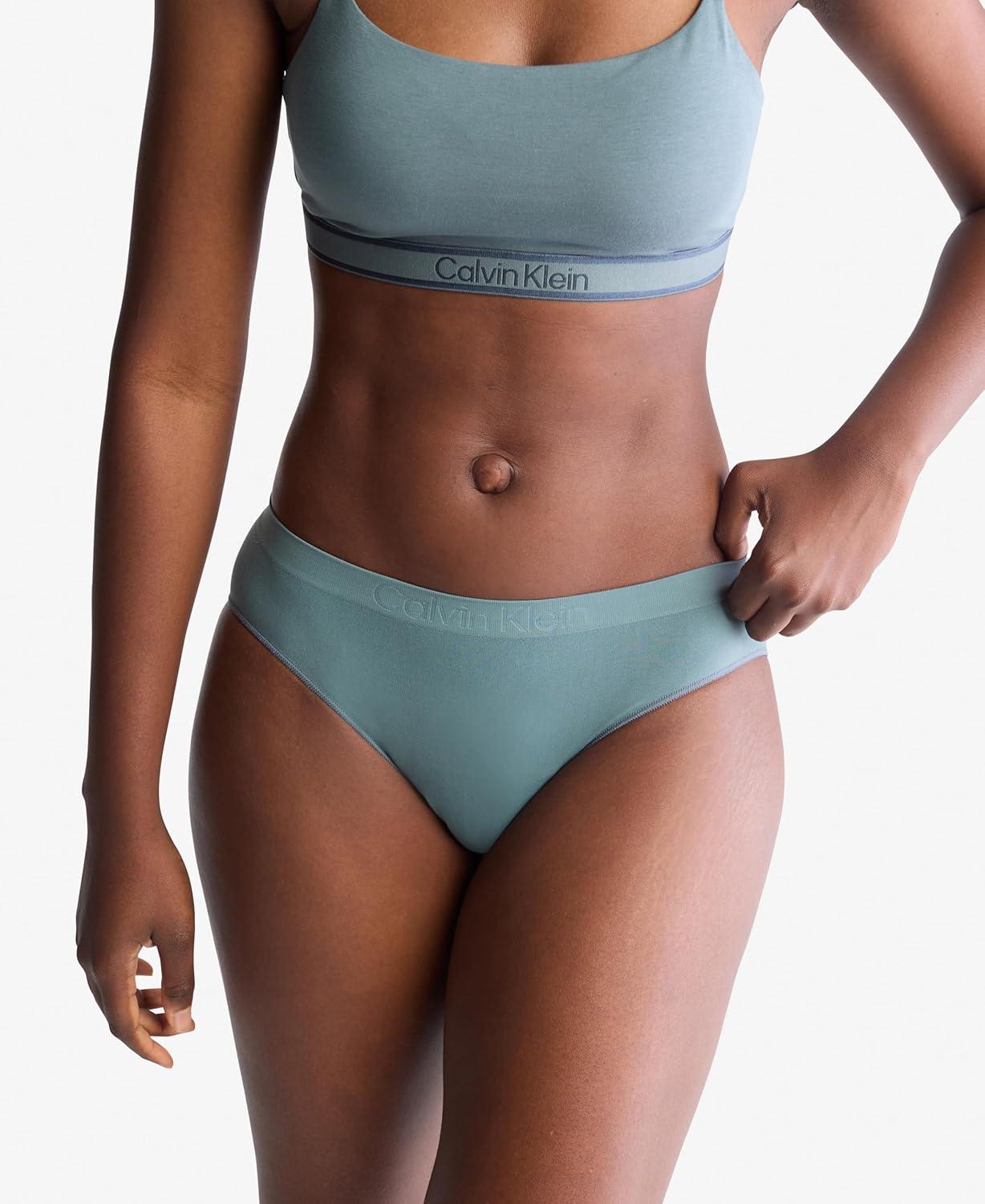 The evolution of comfort. With enhanced support and a super-soft hand in a fine gauge recycled seamless knit, this Calvin Klein bikini is engineered to flex with you. Blended with stretch for lasting comfort, completed with a tonal embroidered logo for a subtle, signature touch.