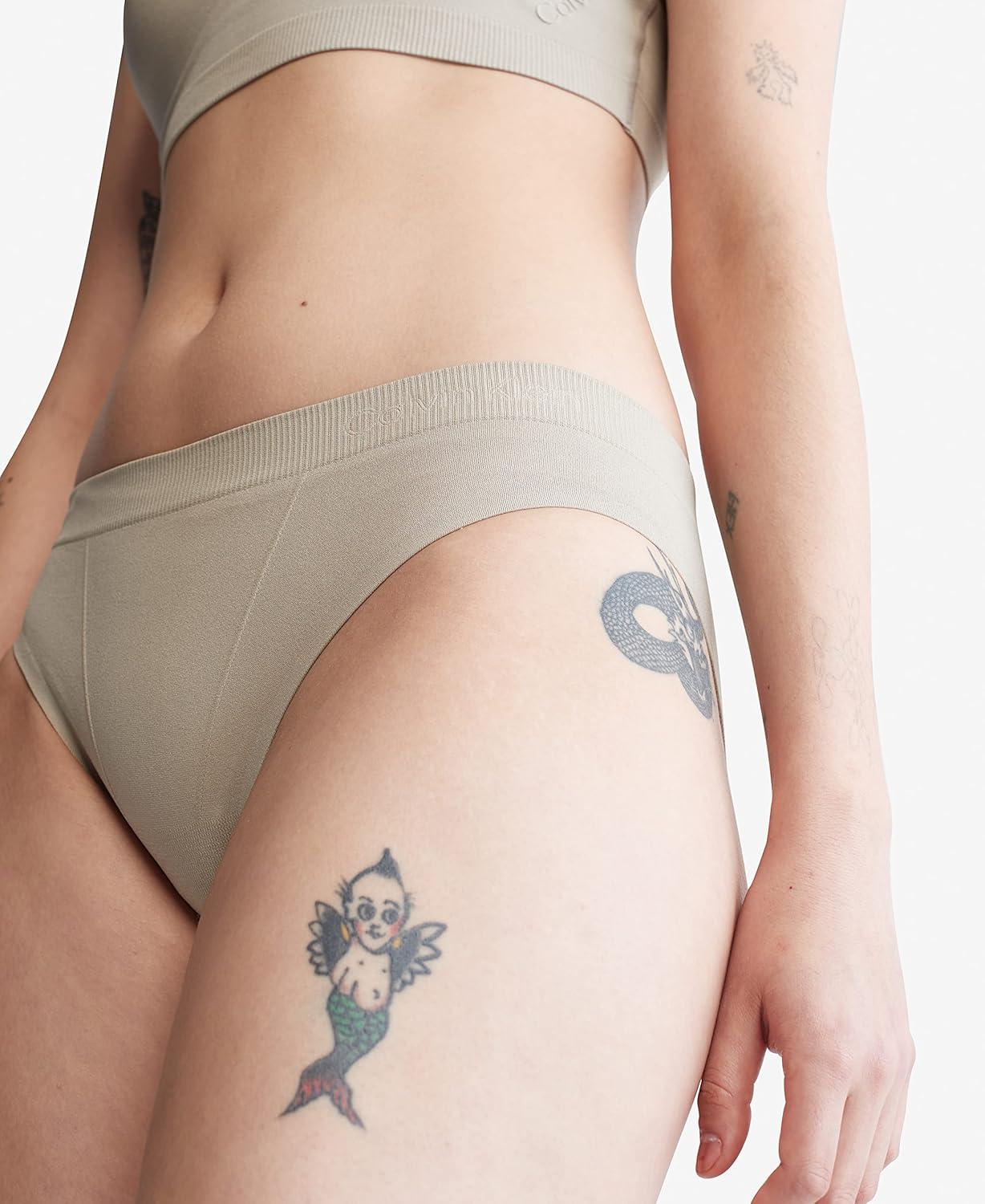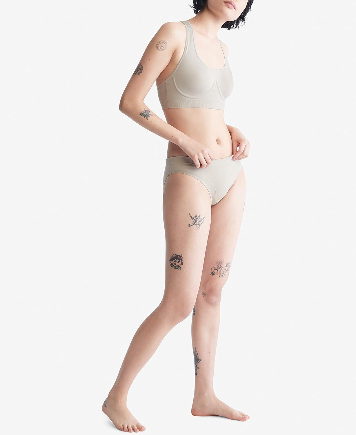 The evolution of comfort. With enhanced support and a super-soft hand in a fine gauge recycled seamless knit, this Calvin Klein bikini is engineered to flex with you. Blended with stretch for lasting comfort, completed with a tonal embroidered logo for a subtle, signature touch.