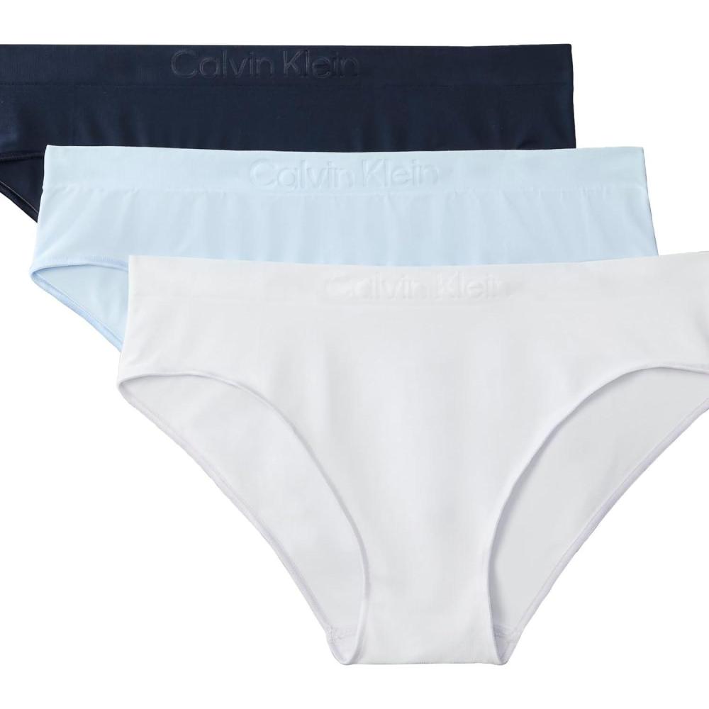 Calvin Klein Women’s Bonded Flex Seamless 3-pack Mid Rise Bikini(Shoreline/ Breezy Blue/ Silver Haze)