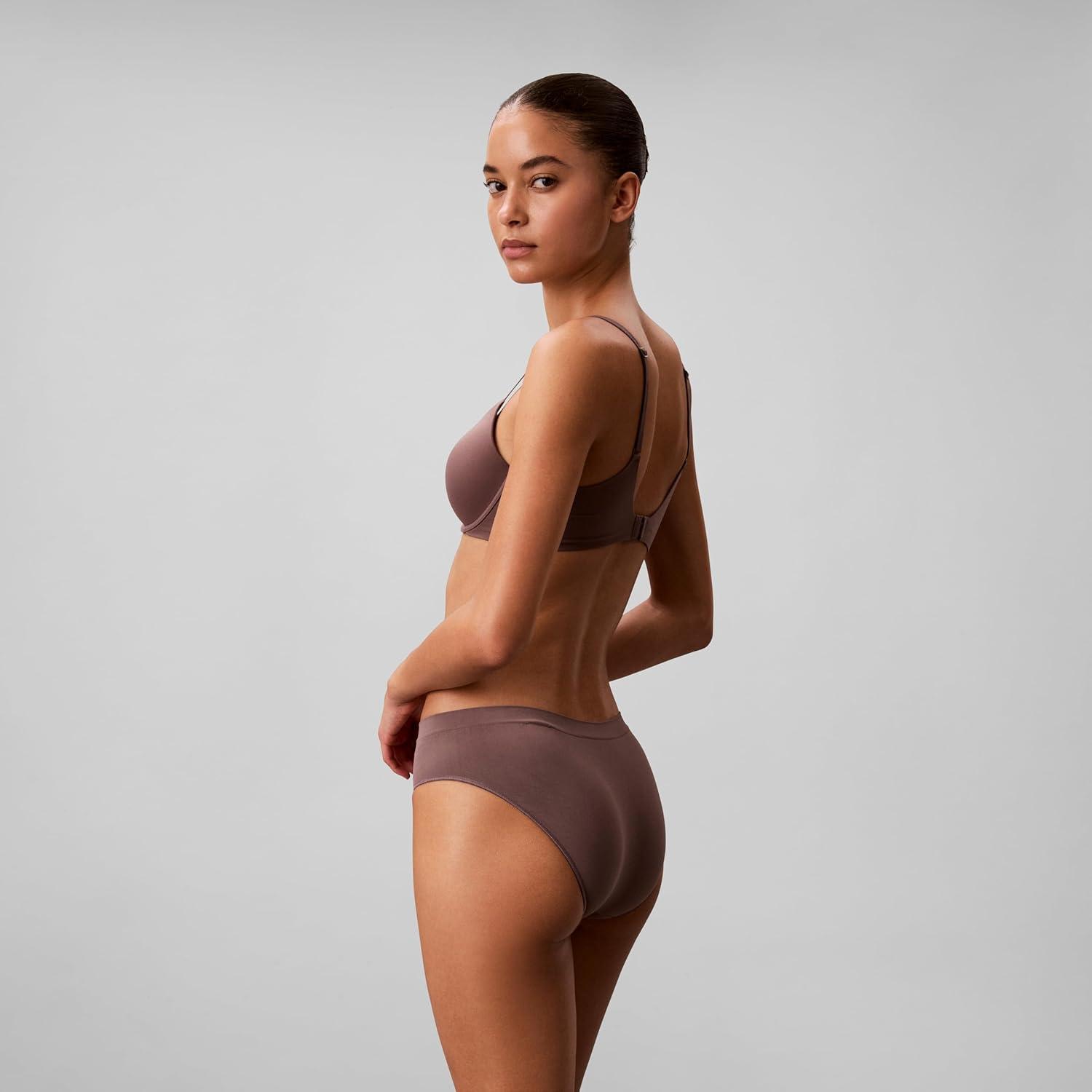 Calvin Klein Women’s Bonded Flex Seamless Bikini Panties, 5 Pack(Shoreline/ Subdued/ Black/ Breezy Blue/ Sparrow)