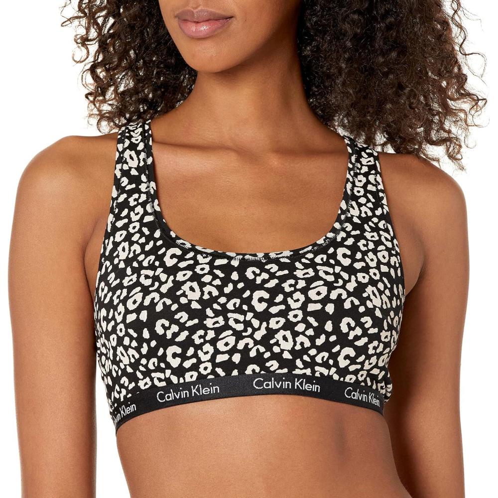 Calvin Klein Women’s Carousel Logo Bralette(Marker Cheetah + Black)