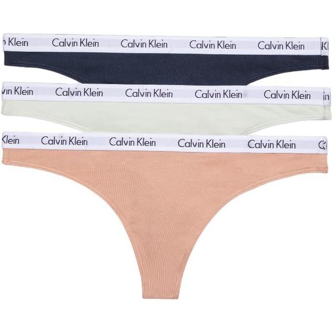 Calvin Klein Women’s Carousel Logo Cotton Stretch Thong Panties, 3 Pack(Iris Orchid/Vanilla Ice/Iceland Blue)
