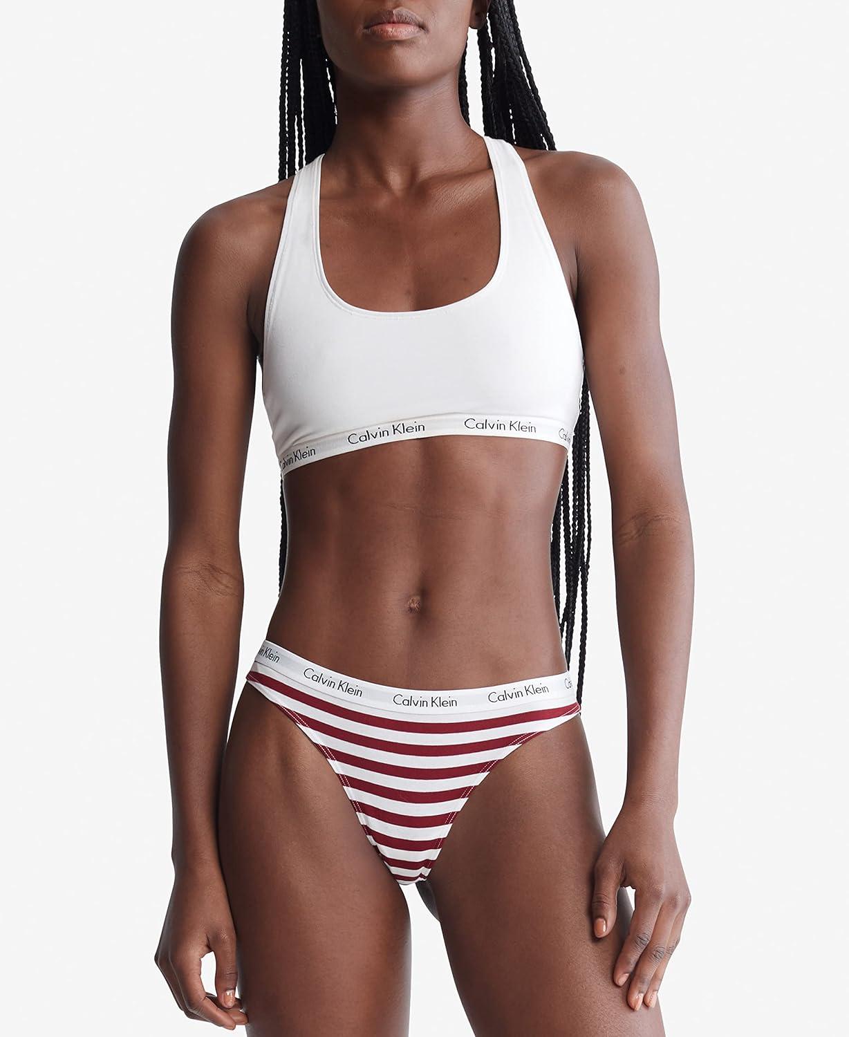 Calvin Klein Women’s Carousel Logo Cotton Stretch Thong Panties, 3 Pack(Shoreline/White/Stripe)