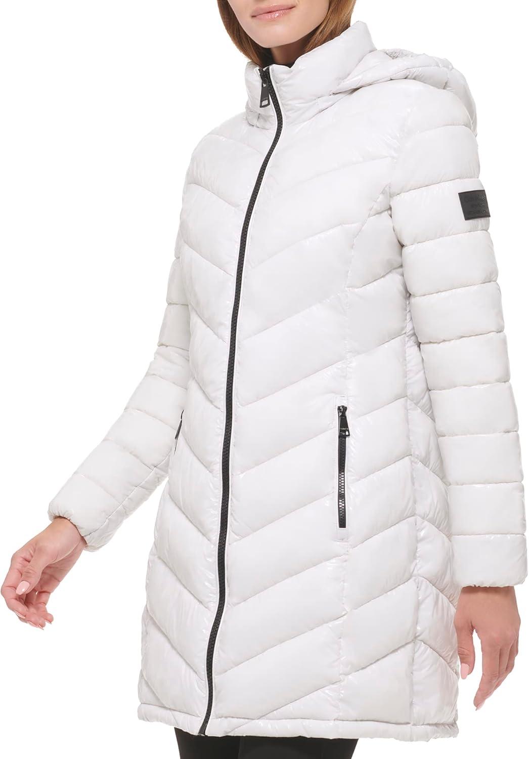 This Calvin Klein womens Outerwear Jacket is a chevron quilting casual lightweight